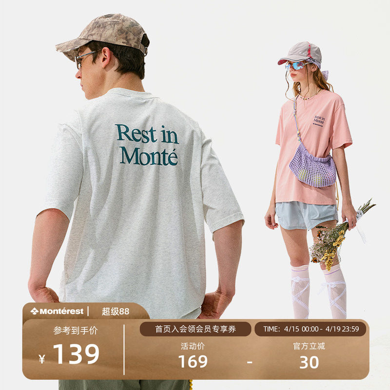 --------------------- 瞬时山野Monterest户外撞色slogan印花吸湿速干抗菌基础短袖T恤男 【原售价】209元 【现售价】139元 【推荐理由】