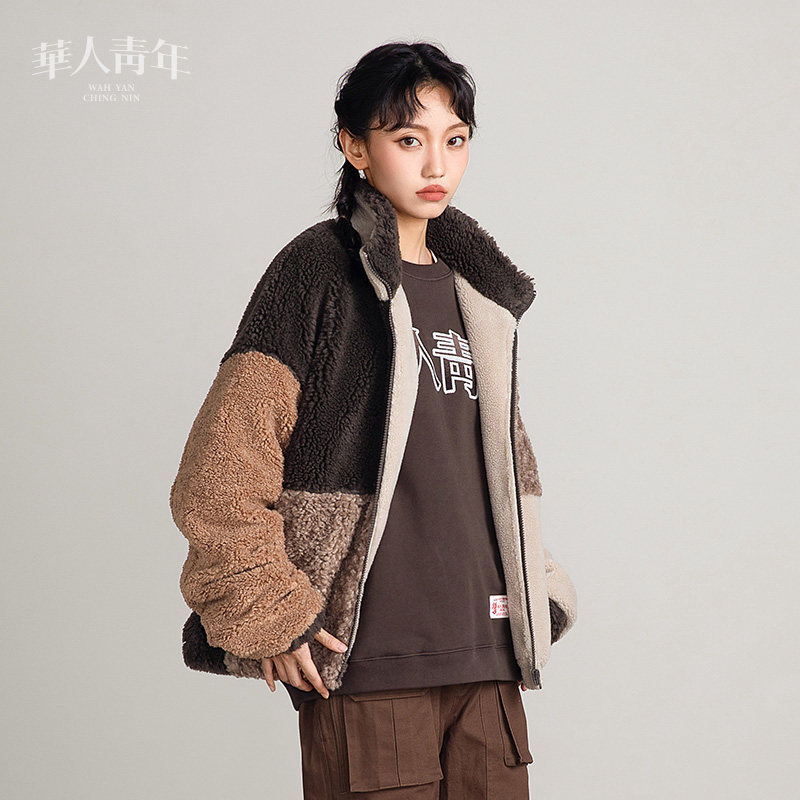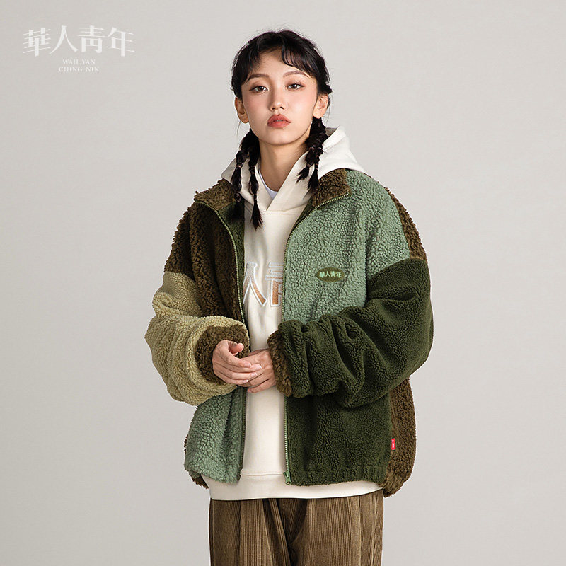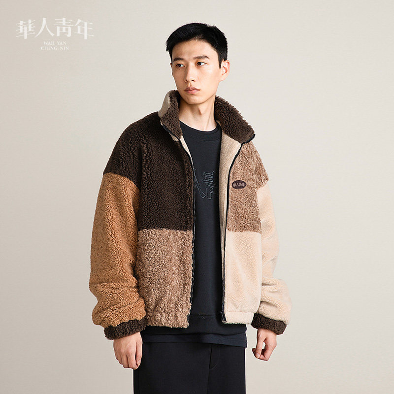 --------------------- 华人青年拼色立领羊羔绒棉服外套国潮宽松休闲秋冬设计款上衣男 【原售价】899元 【现售价】280元 【推荐理由】