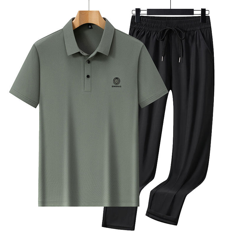 淘宝休闲套装男款2026新款夏季凉感速干直筒裤高端商务短袖polo衫套装