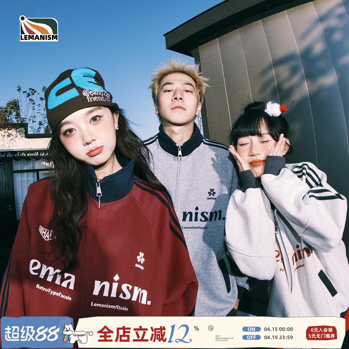 lemanism棒球服红色外套男款立领春季情侣美式运动夹克上衣卫衣女