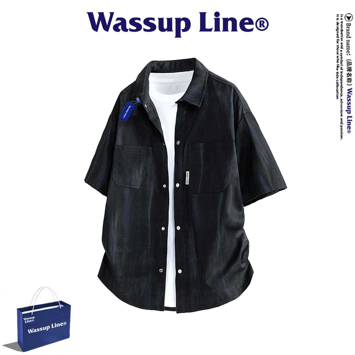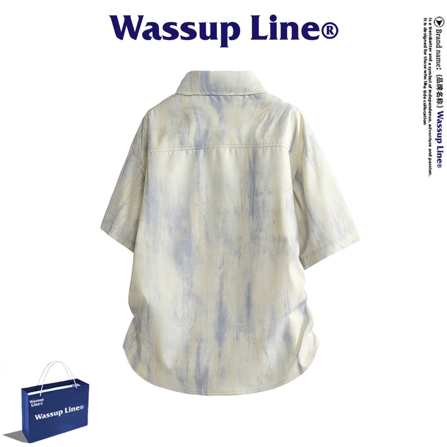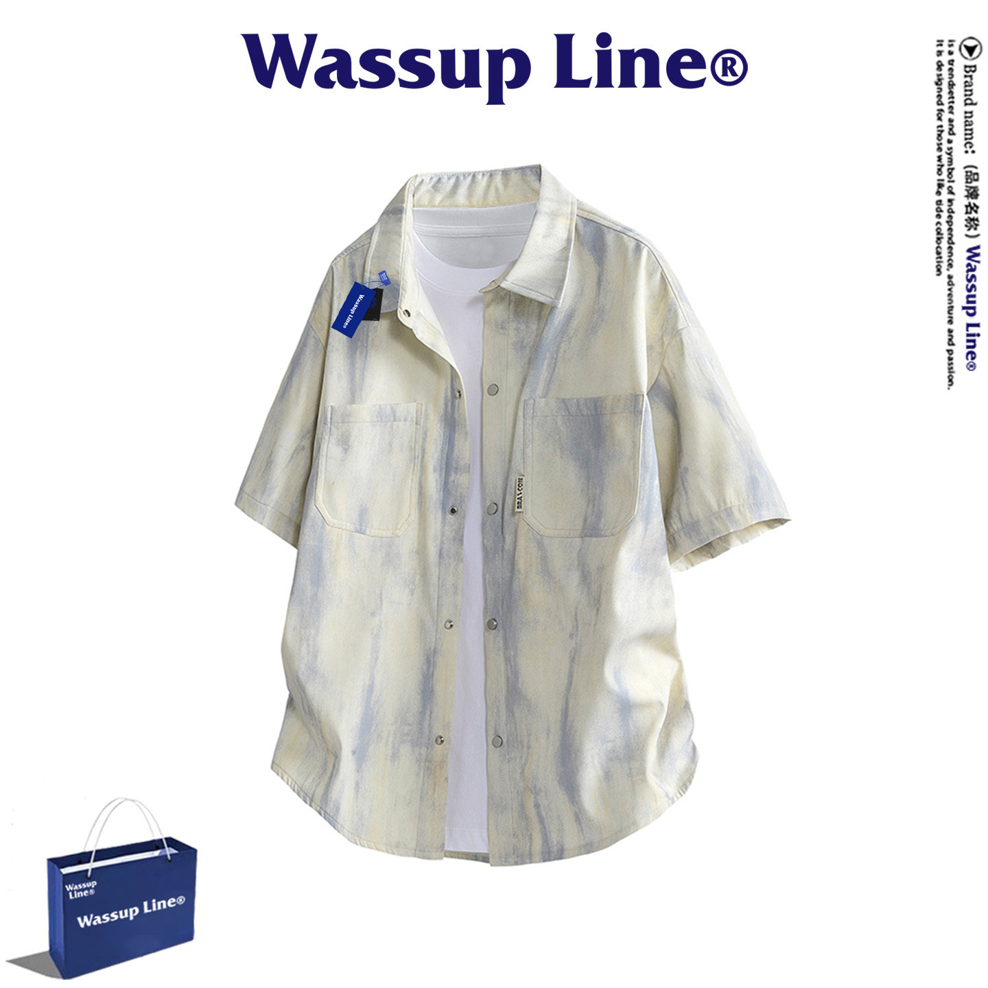 WASSUP Line潮牌休闲短袖衬衫男夏季潮流扎染开衫宽松翻领上衣