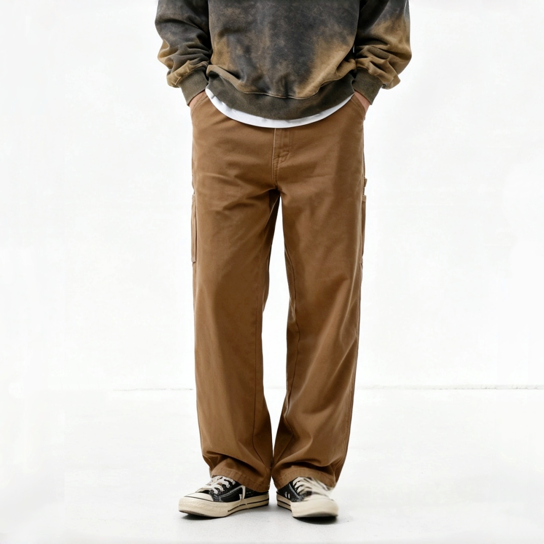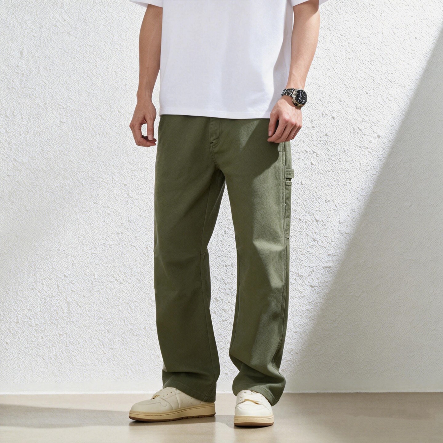 RE新款木匠裤男宽松直筒工装裤多口袋休闲纯棉无弹通勤男伐木工裤