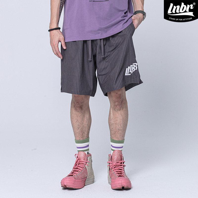 LNBR国潮24夏竖条纹休闲短裤男美式高街宽松百搭五分裤男大码