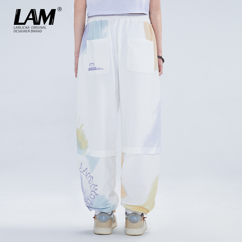 LAMLICKA国潮扎染印花休闲卫裤男春季新款运动宽松薄款束脚长裤女