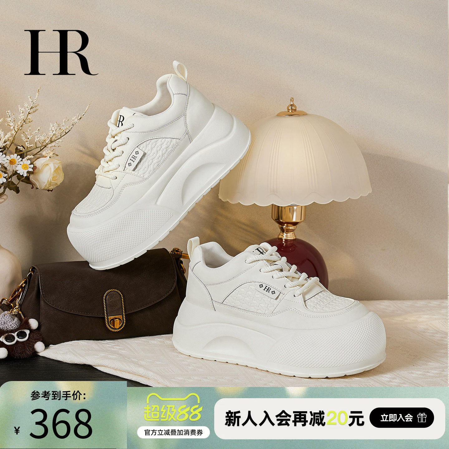 淘宝HR赫莲娜休闲小白鞋2026年春季新款女鞋子厚底轻便面包鞋增高百搭