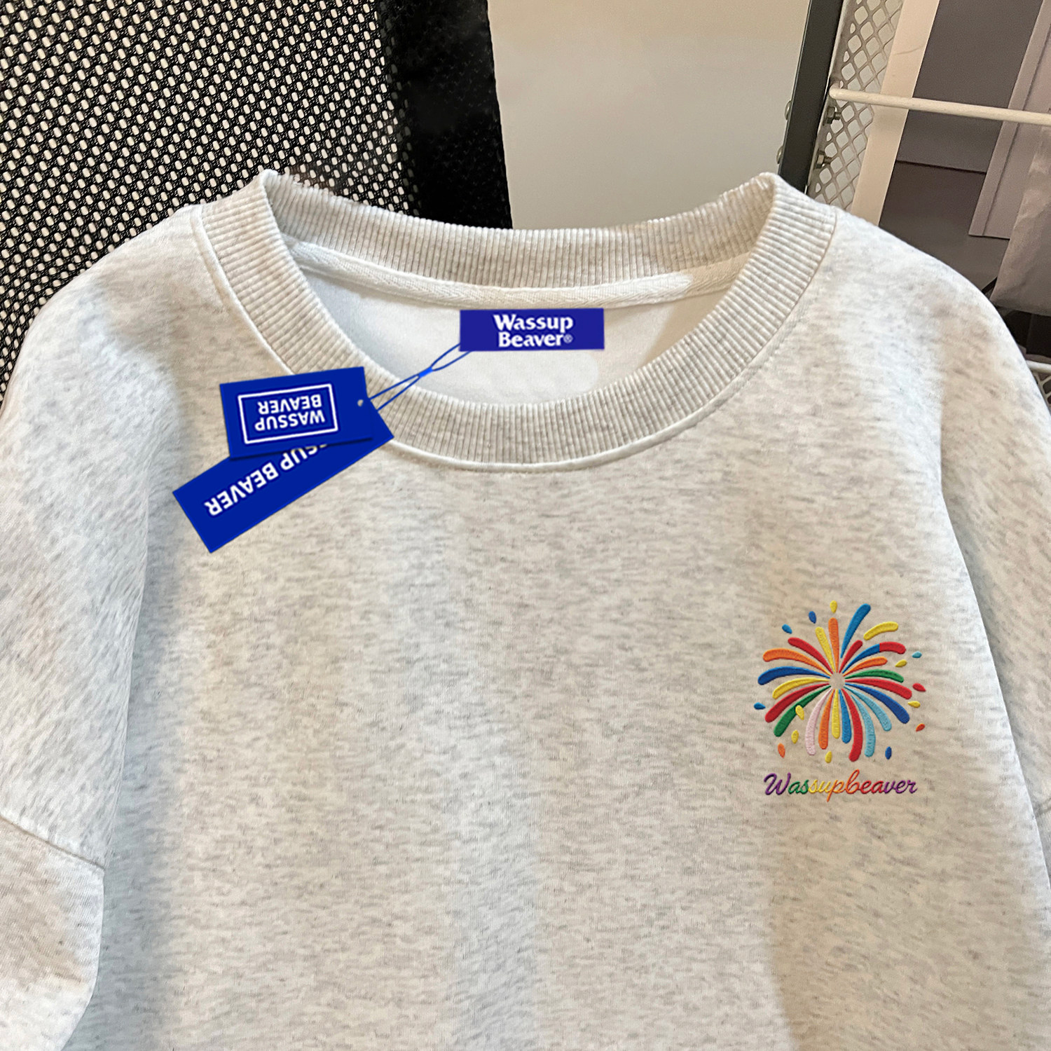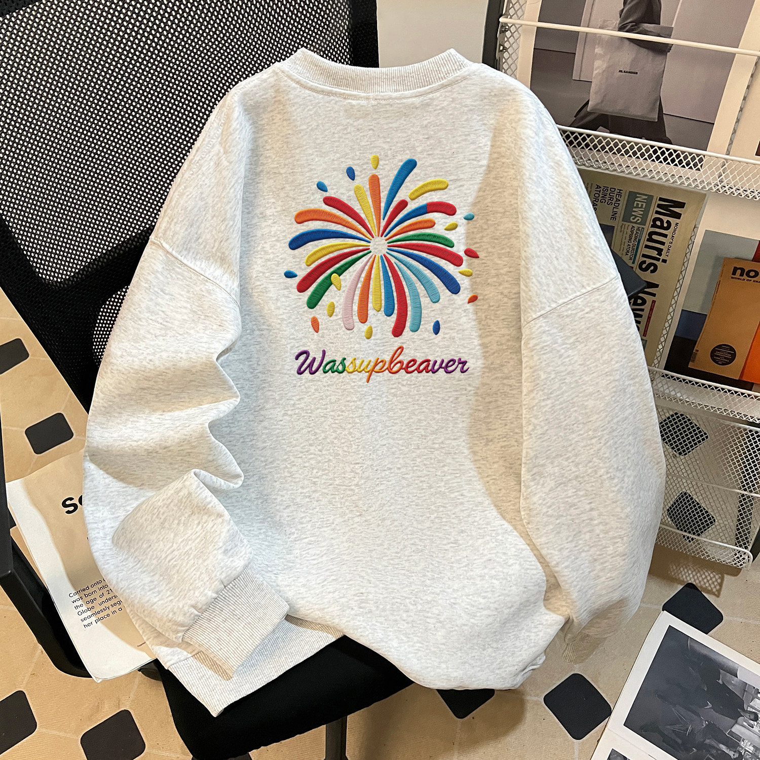 WASSUP BEAVER潮牌绚丽烟花圆领情侣款卫衣秋冬新款时尚加绒上衣