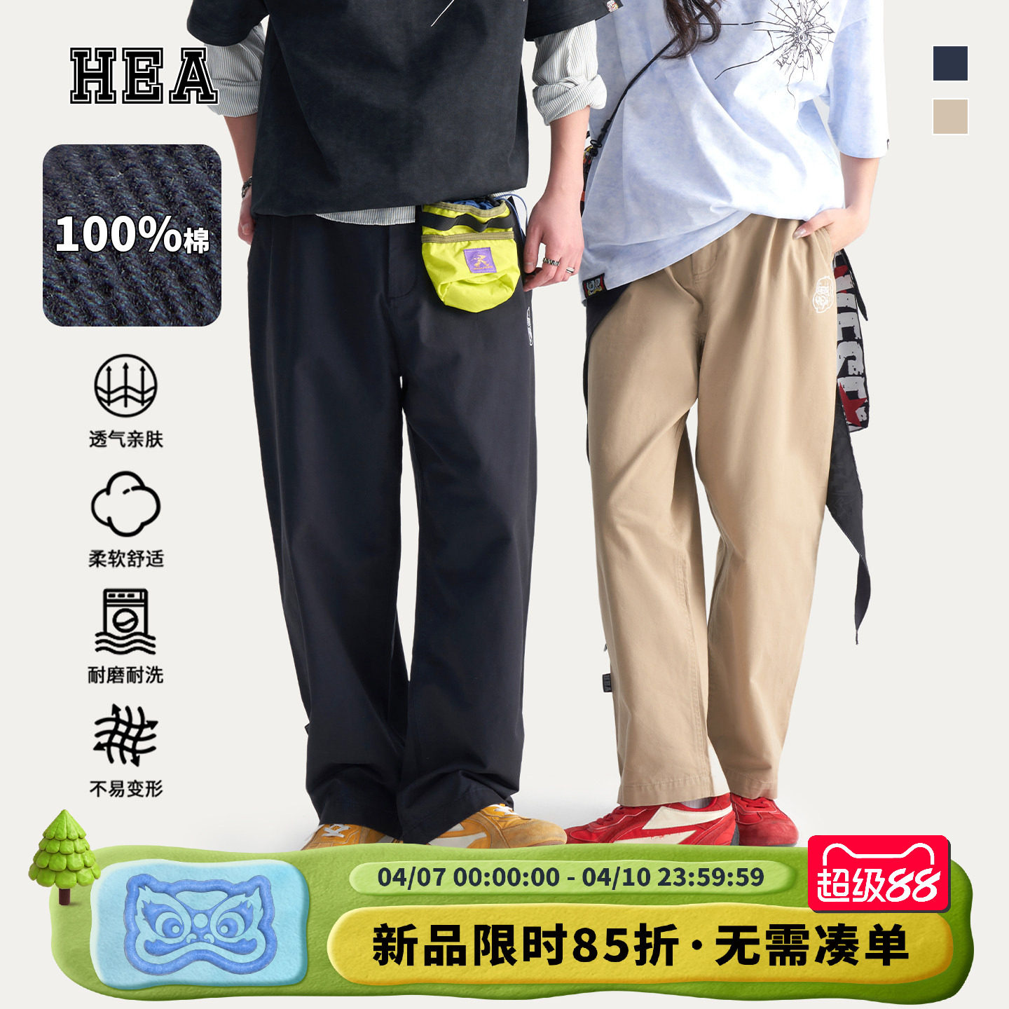 --------------------- HEA x i.t fingercroxx国潮醒狮工装休闲裤男款纯棉直筒宽松裤子 --------------------- --------------------- 【原价】499元 【券后价】176元