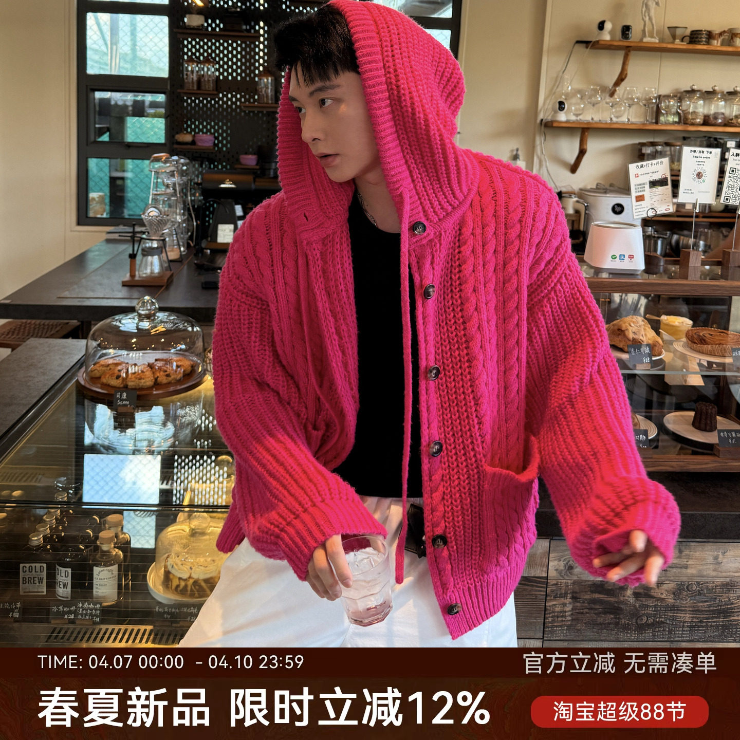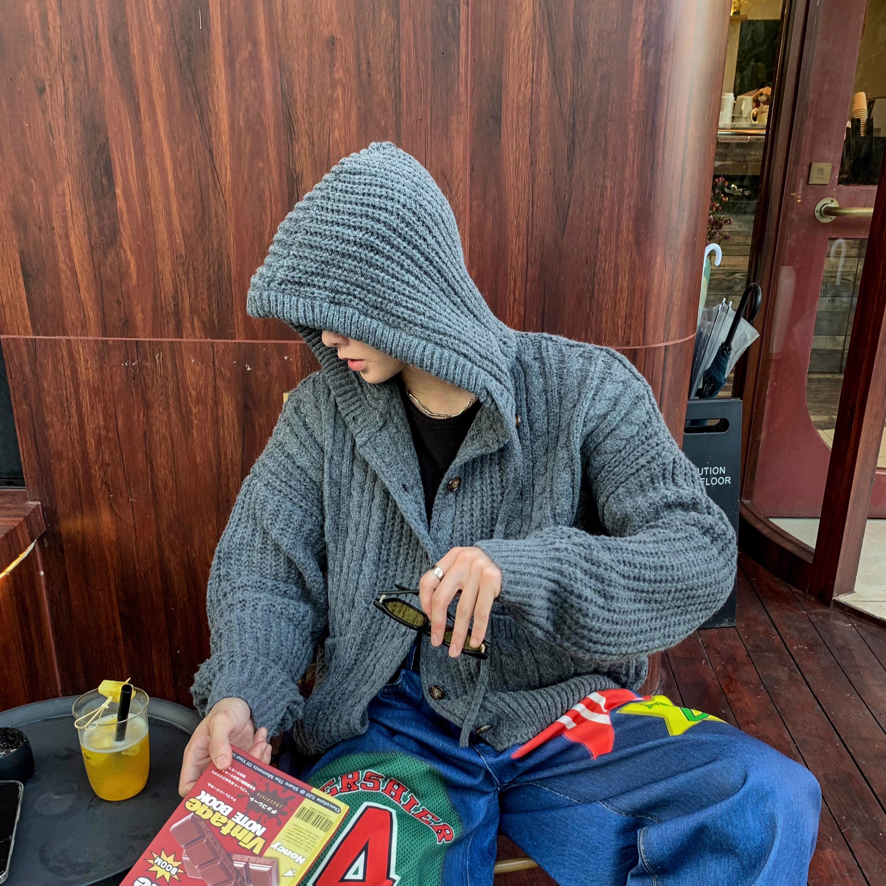获衣局-连帽毛衣美式粗线麻花针织韩系净版慵懒宽松连帽毛衣外套