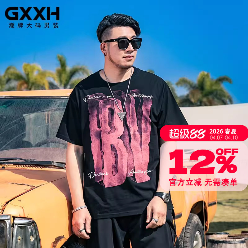 GxxH大码男装2026夏新款短袖T恤男士宽松半袖圆领高级感嘻哈上衣