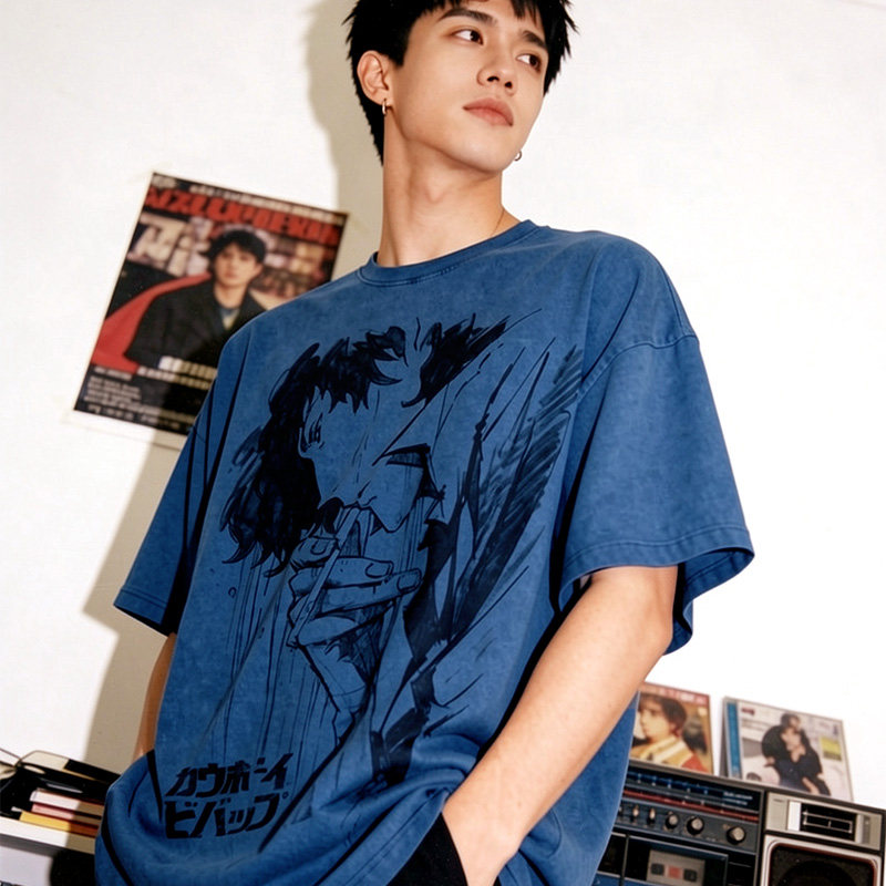 TEE7-日系复古动漫Cowboy星际牛仔T恤赏金猎人水洗做旧纯棉短袖