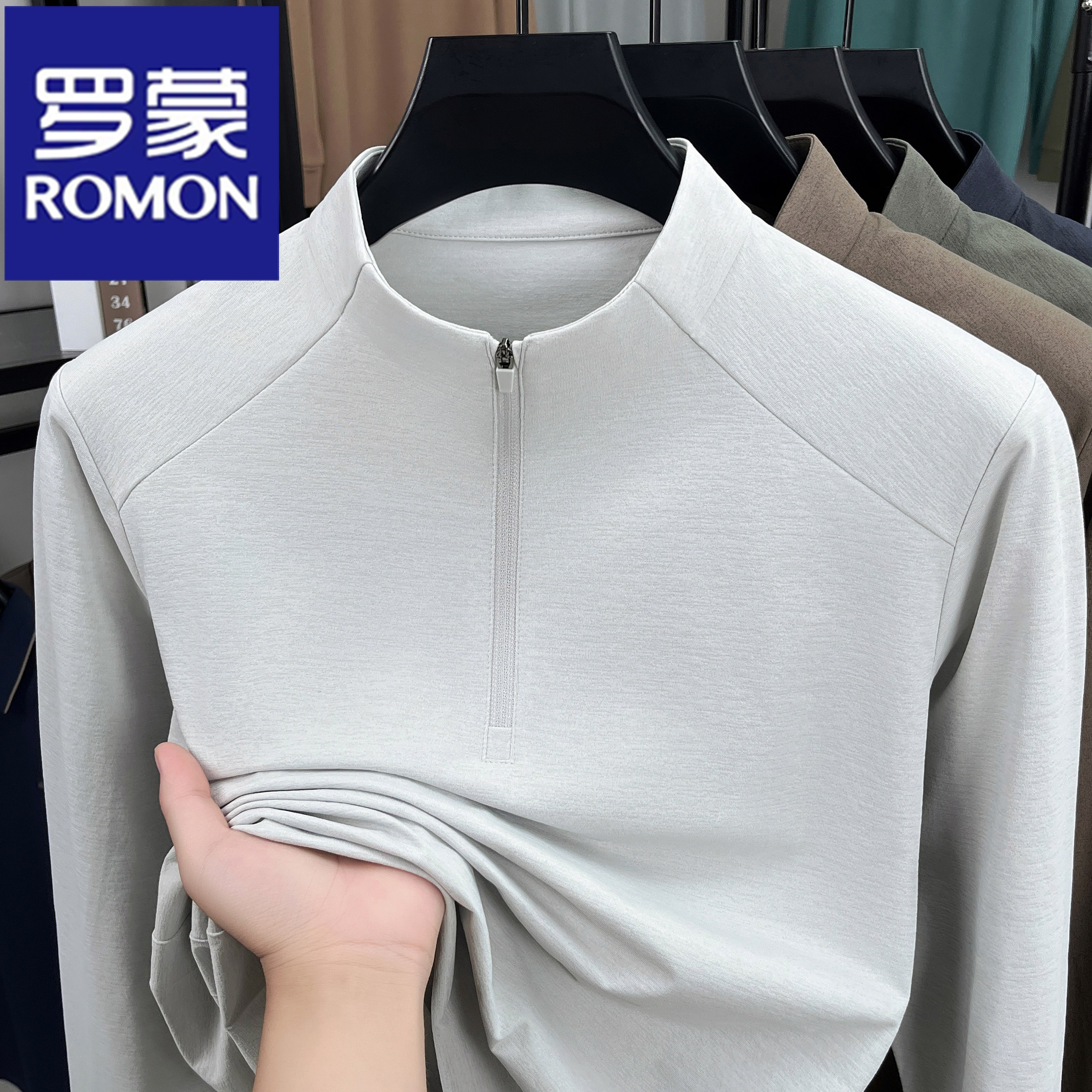 罗蒙2026新款春季男士长袖T恤立领半拉链休闲免烫户外速干上衣服