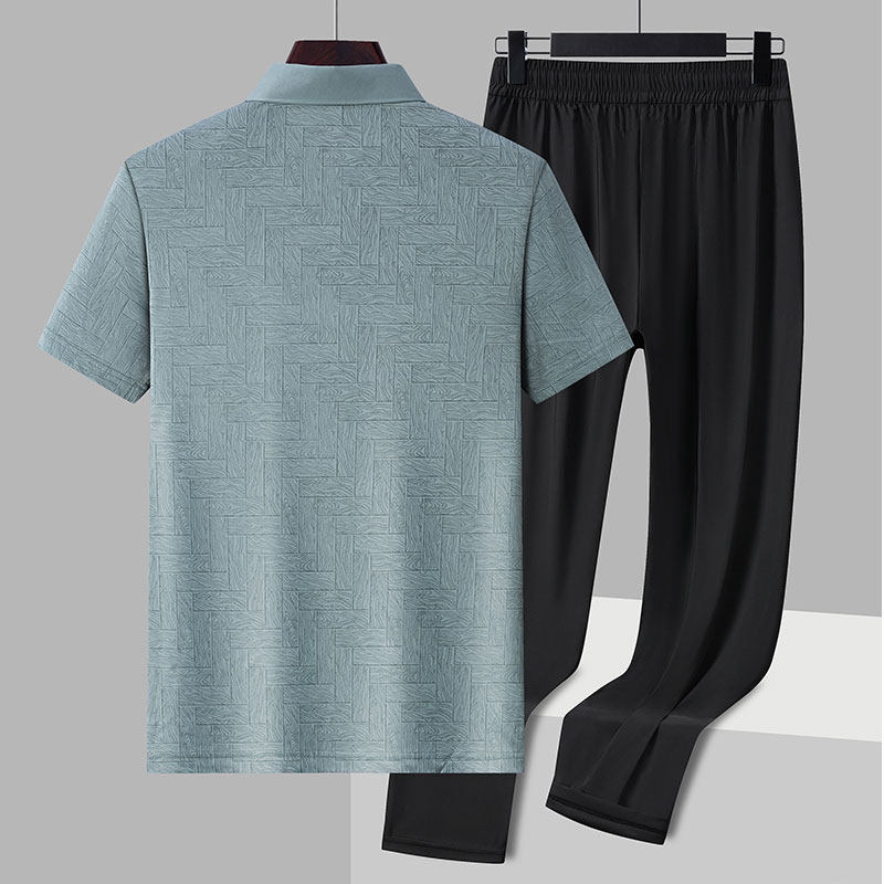 罗蒙无痕冰丝短袖polo衫套装男士夏季商务休闲清爽透气轻薄两件套
