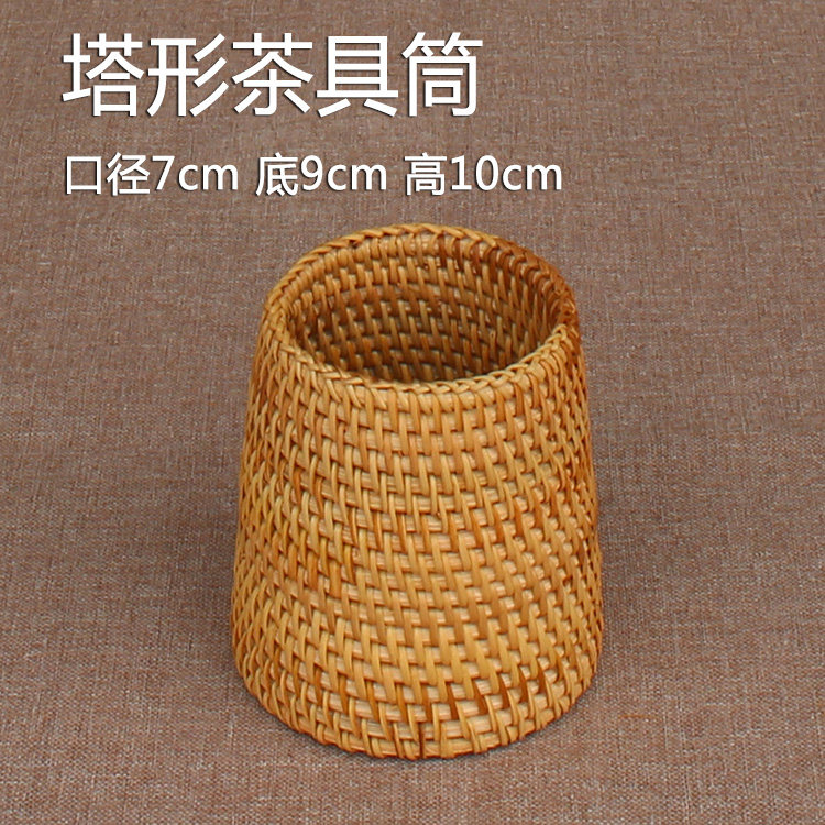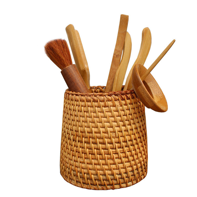越南秋藤编笔筒 茶具竹茶夹茶勺茶针 普洱茶六君子茶道配件收纳筒