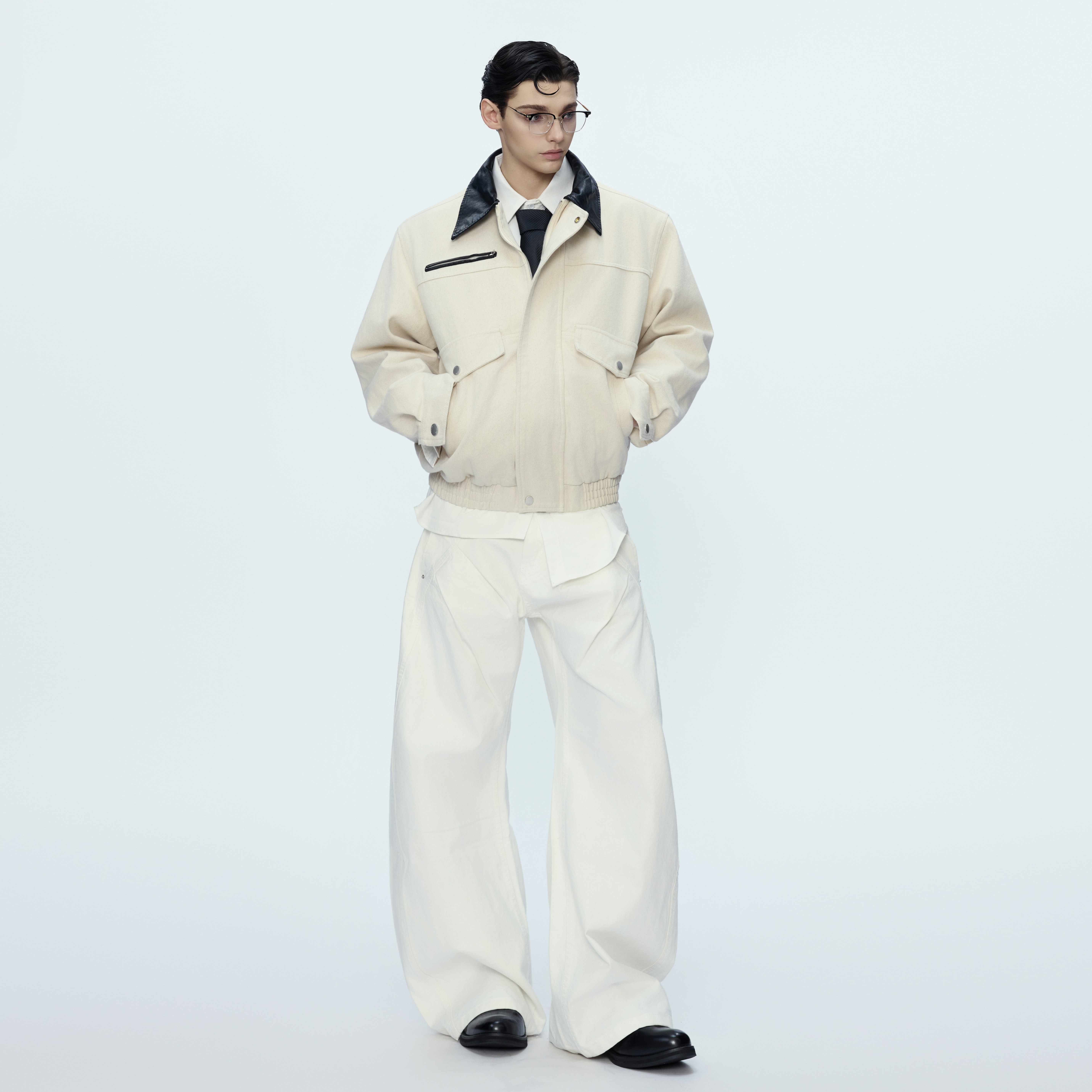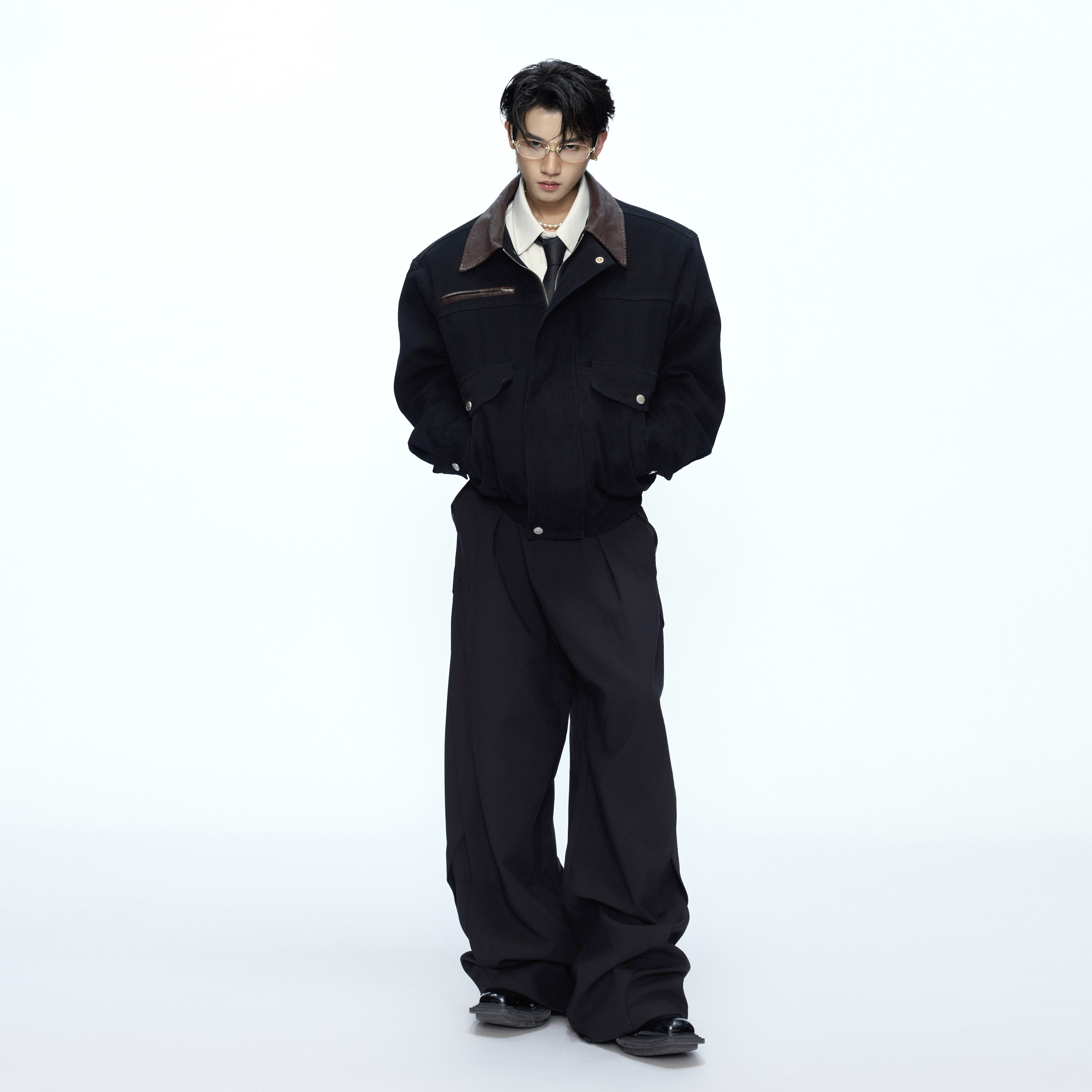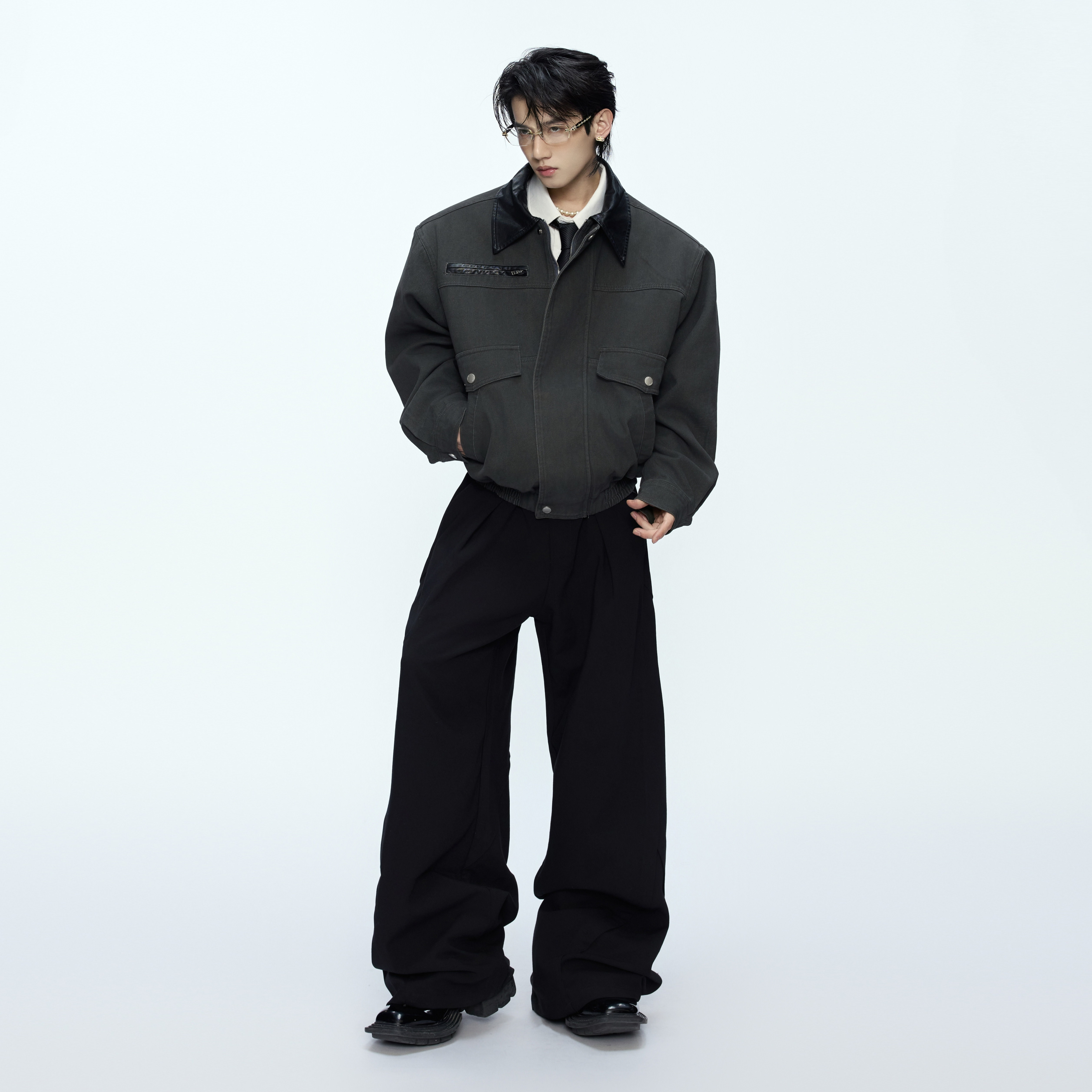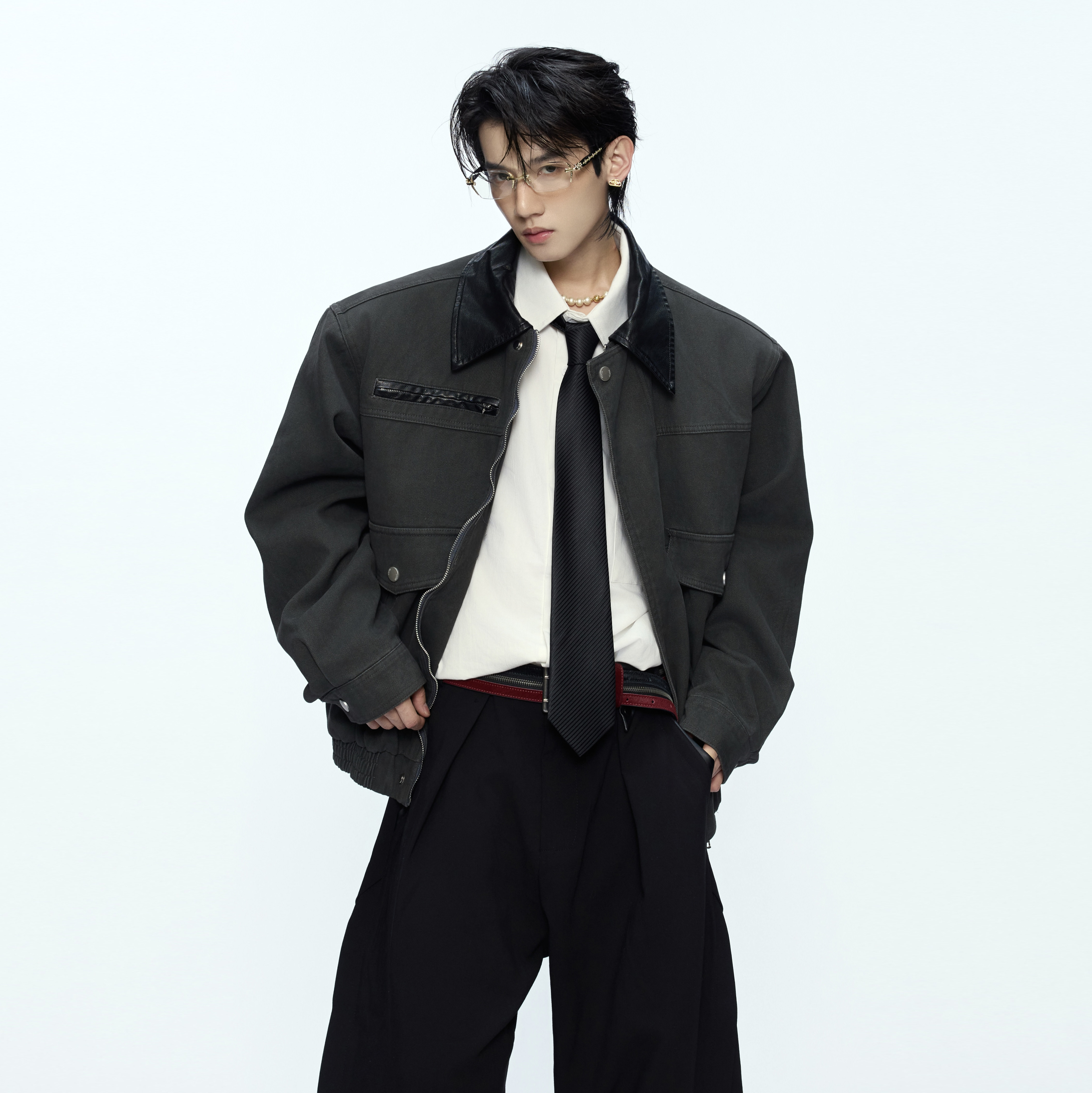 ArguE CulturE古典轮廓*撞色翻领挺阔夹克工装大口袋外套拉链上衣