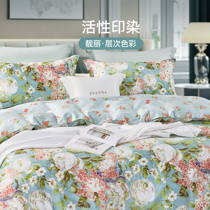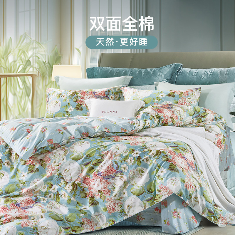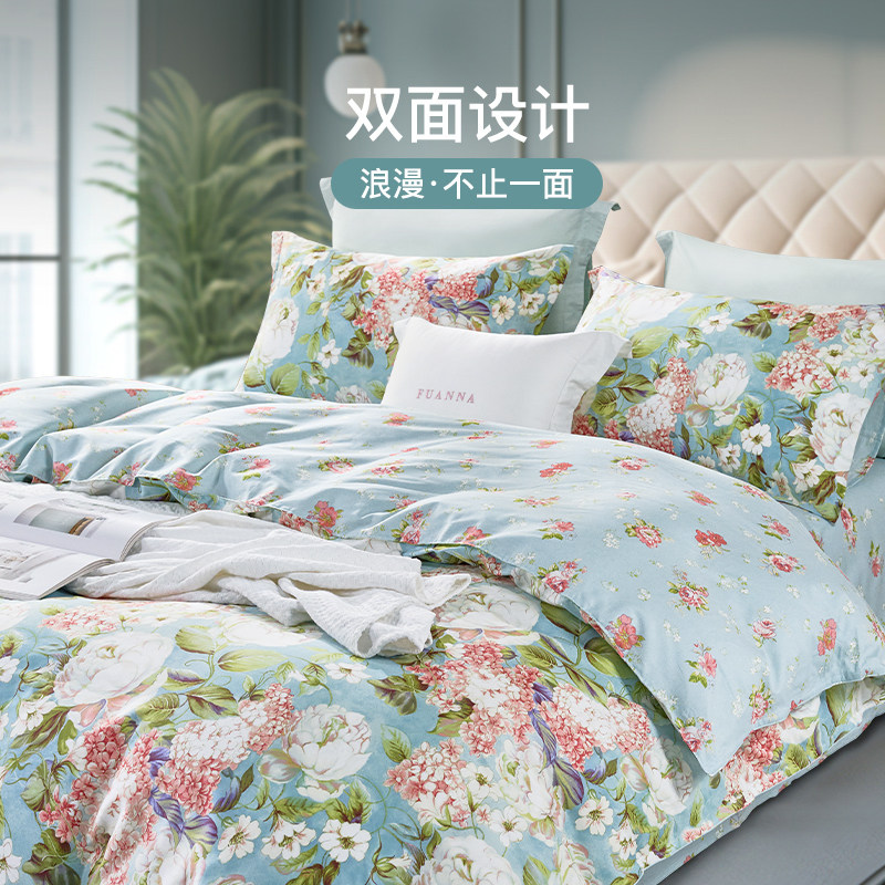 富安娜床上用品四件套全棉纯棉100套件春夏床单印花被套床笠被罩