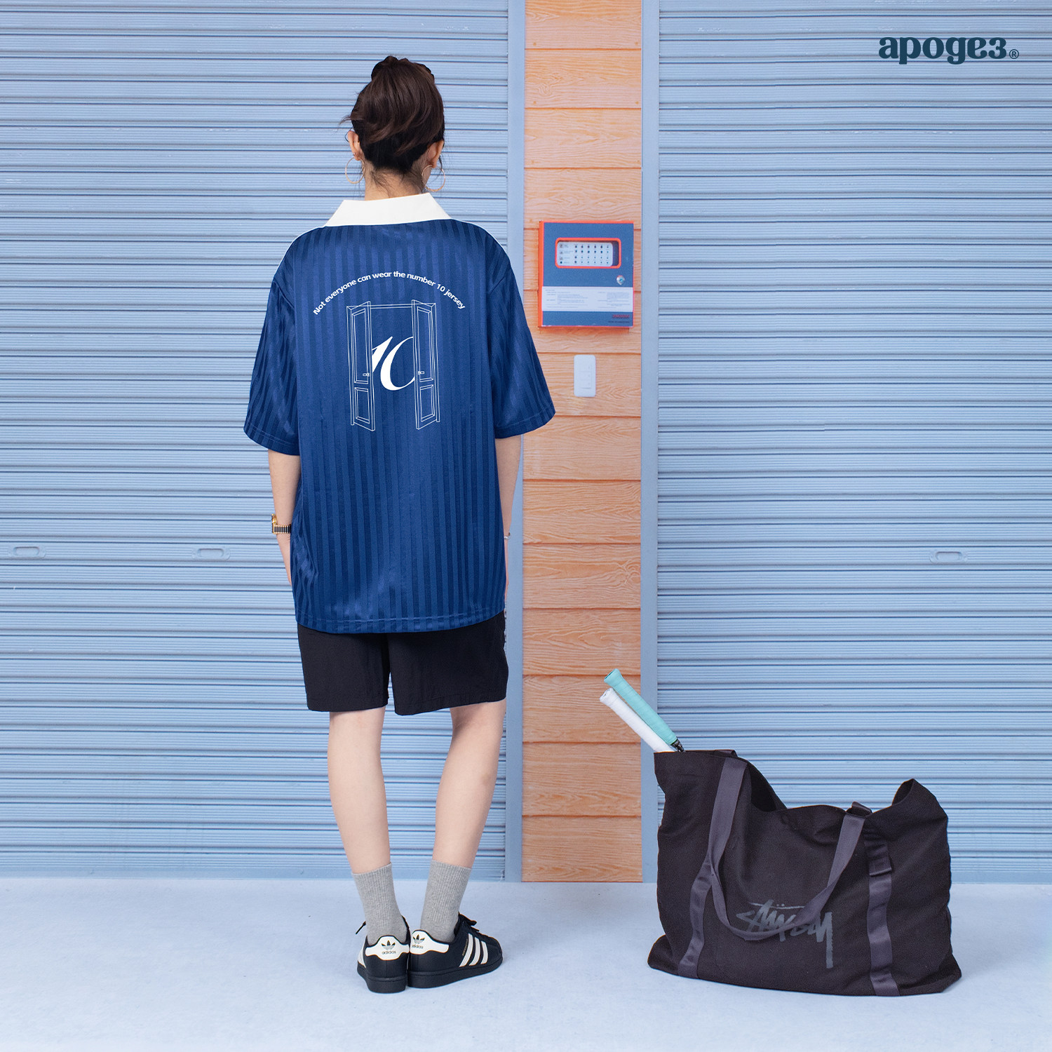 APOGE3阿保机条纹球衣圆领短袖T恤男宽松百搭运动重磅条纹上衣
