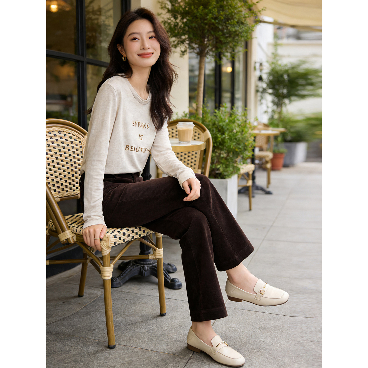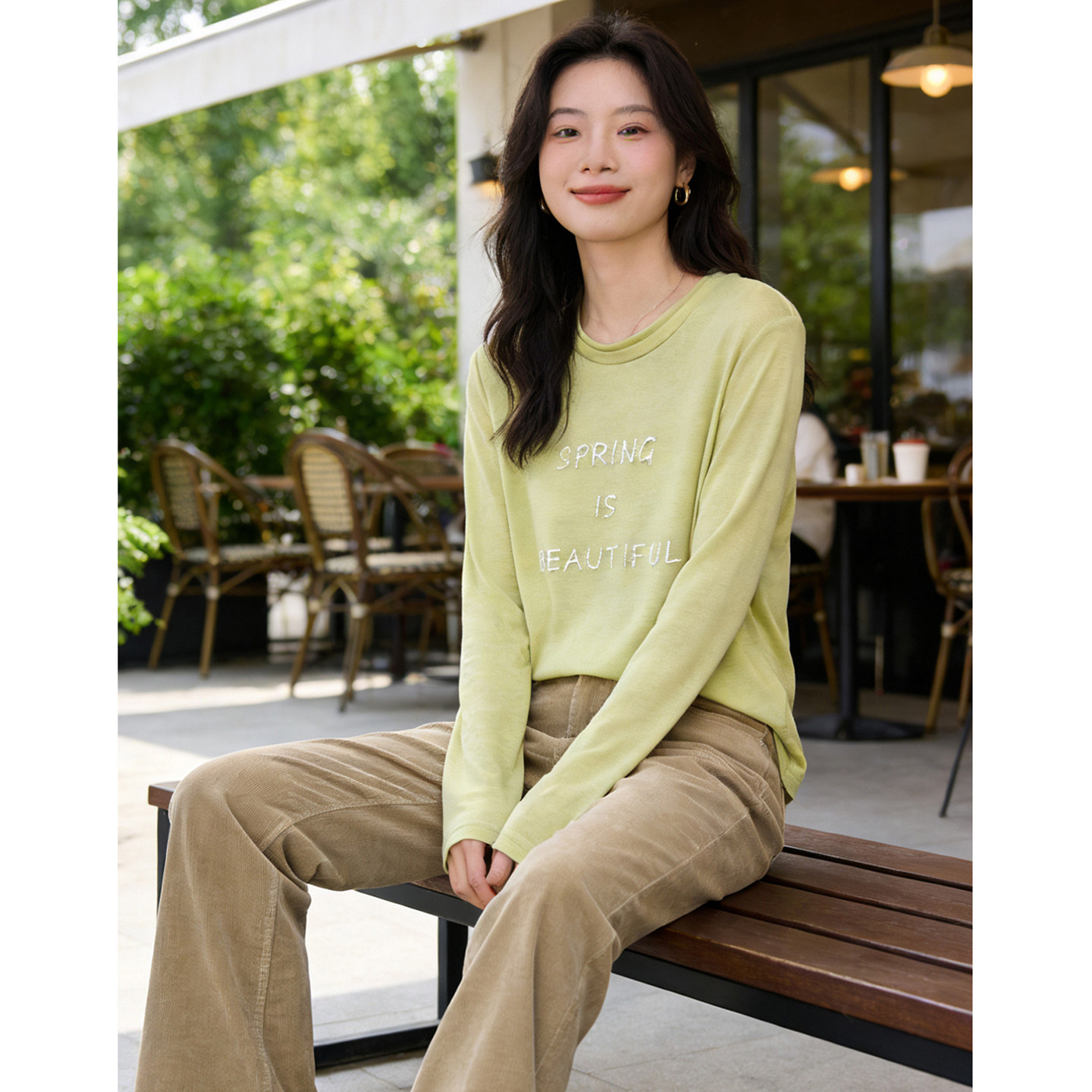 穿搭巨好看 早春字母刺绣T恤 莱赛尔绵羊毛丝滑垂坠长袖圆领T恤女