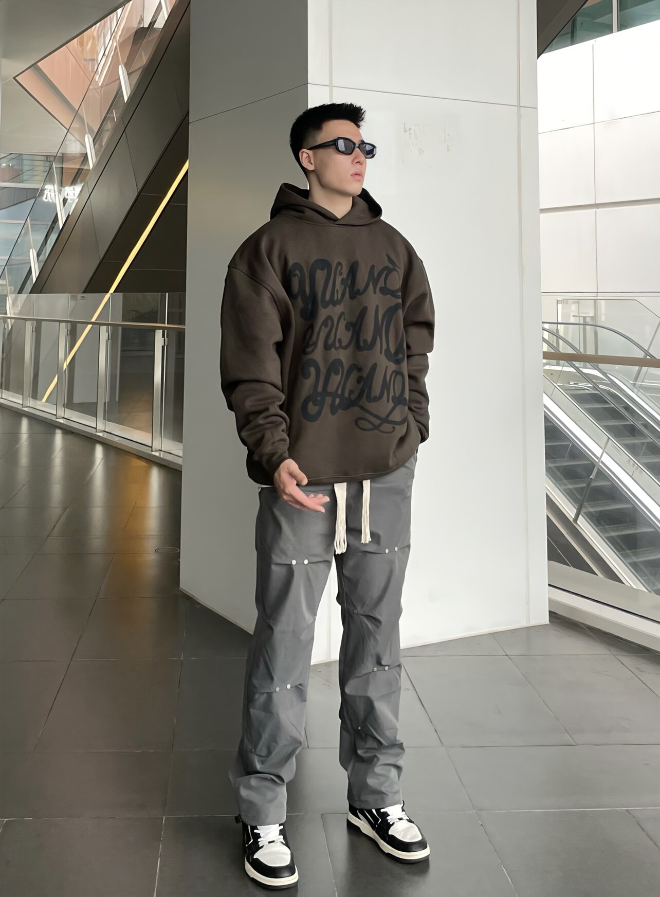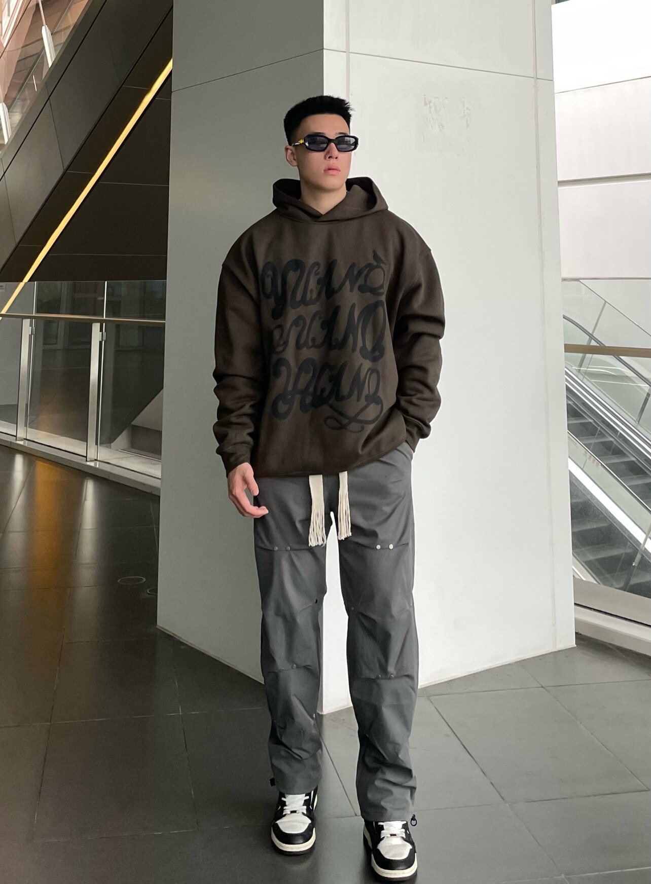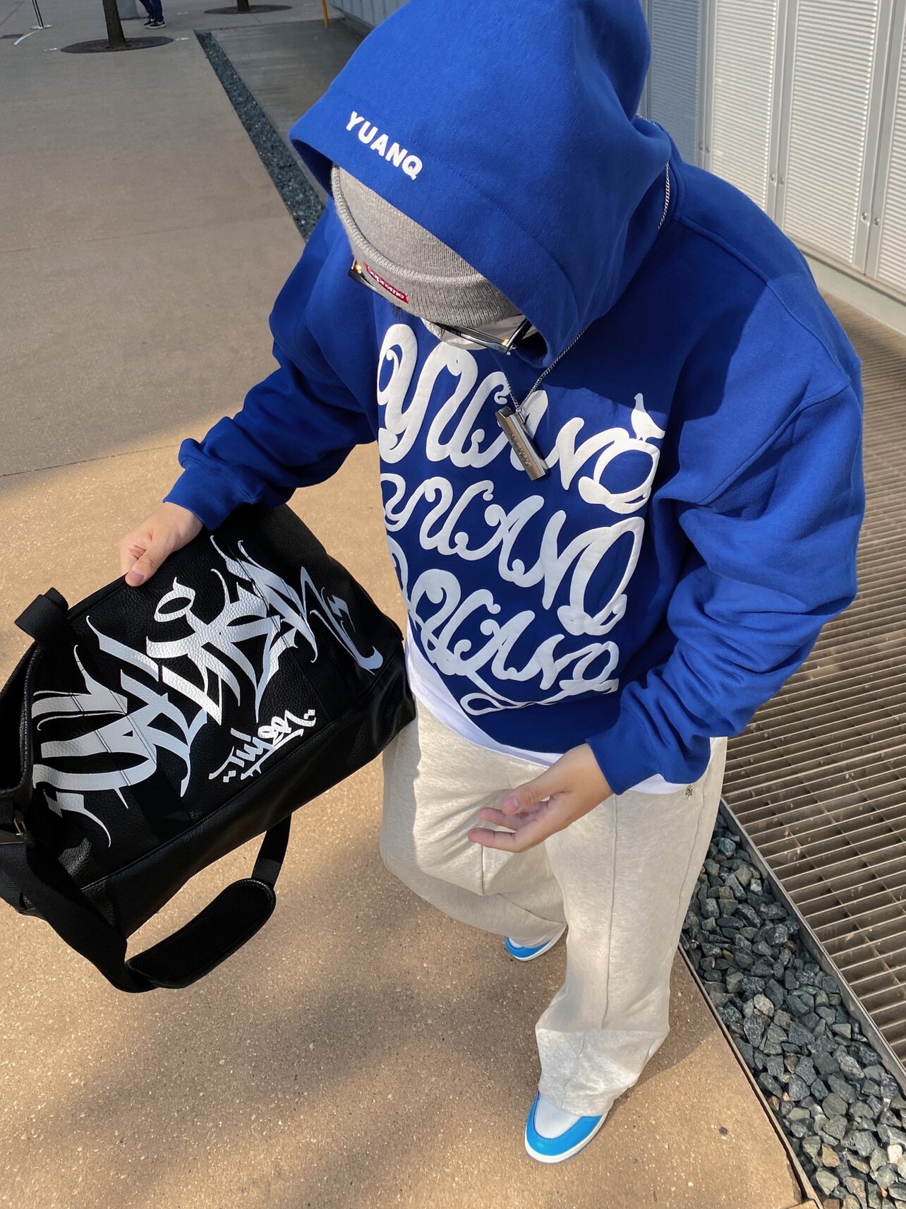 淘宝YUANQ发泡logo连帽卫衣美式街头宽松休闲国潮加绒高街情侣上衣