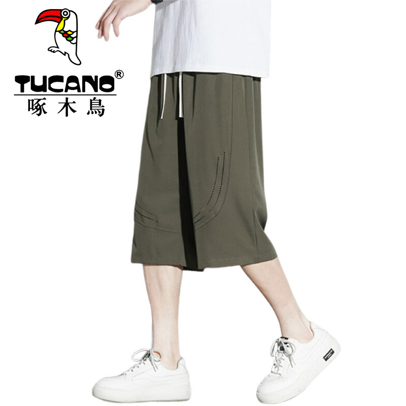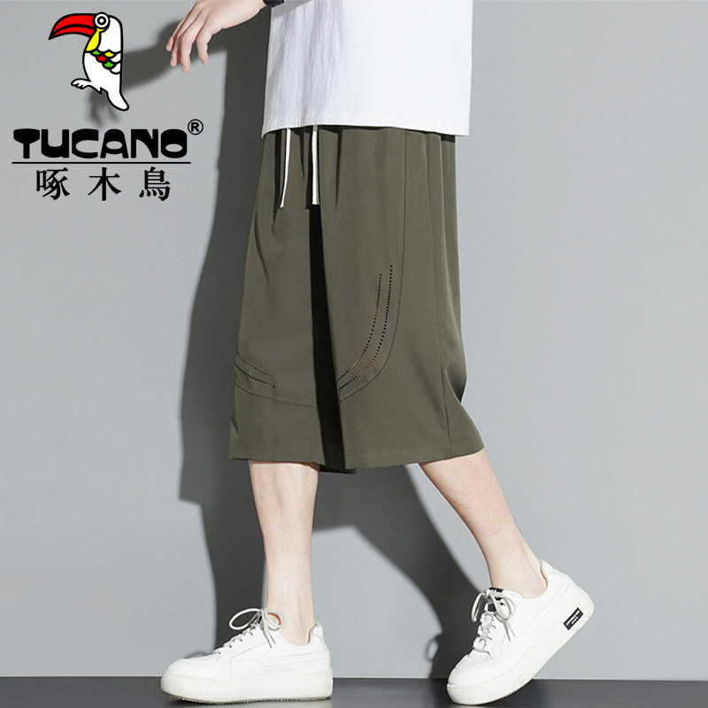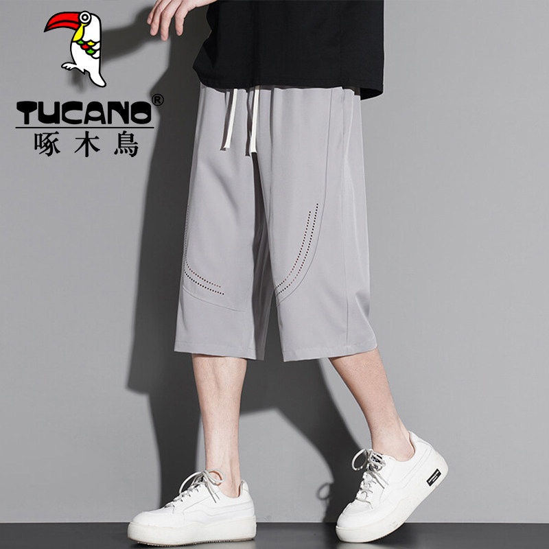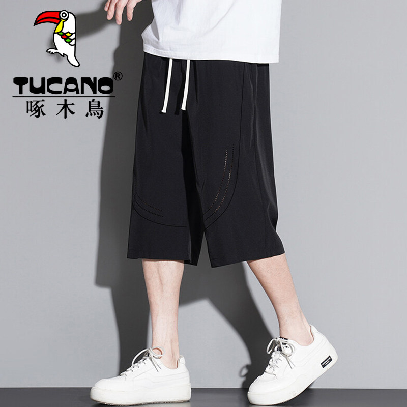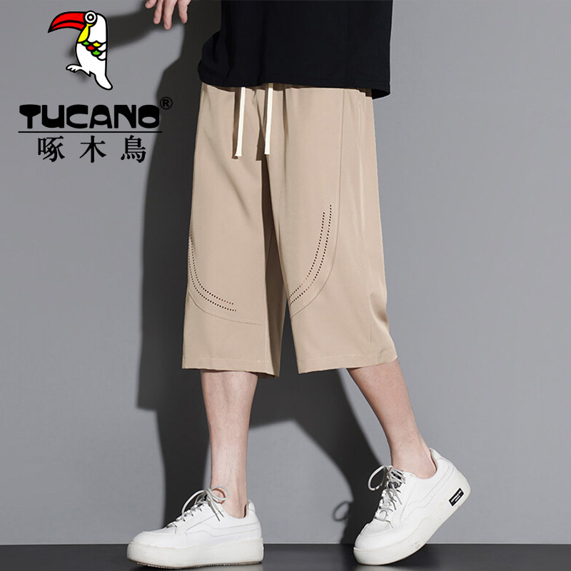 啄木鸟冰丝七分裤男生夏季宽松六分短裤休闲运动速干马裤潮牌中裤