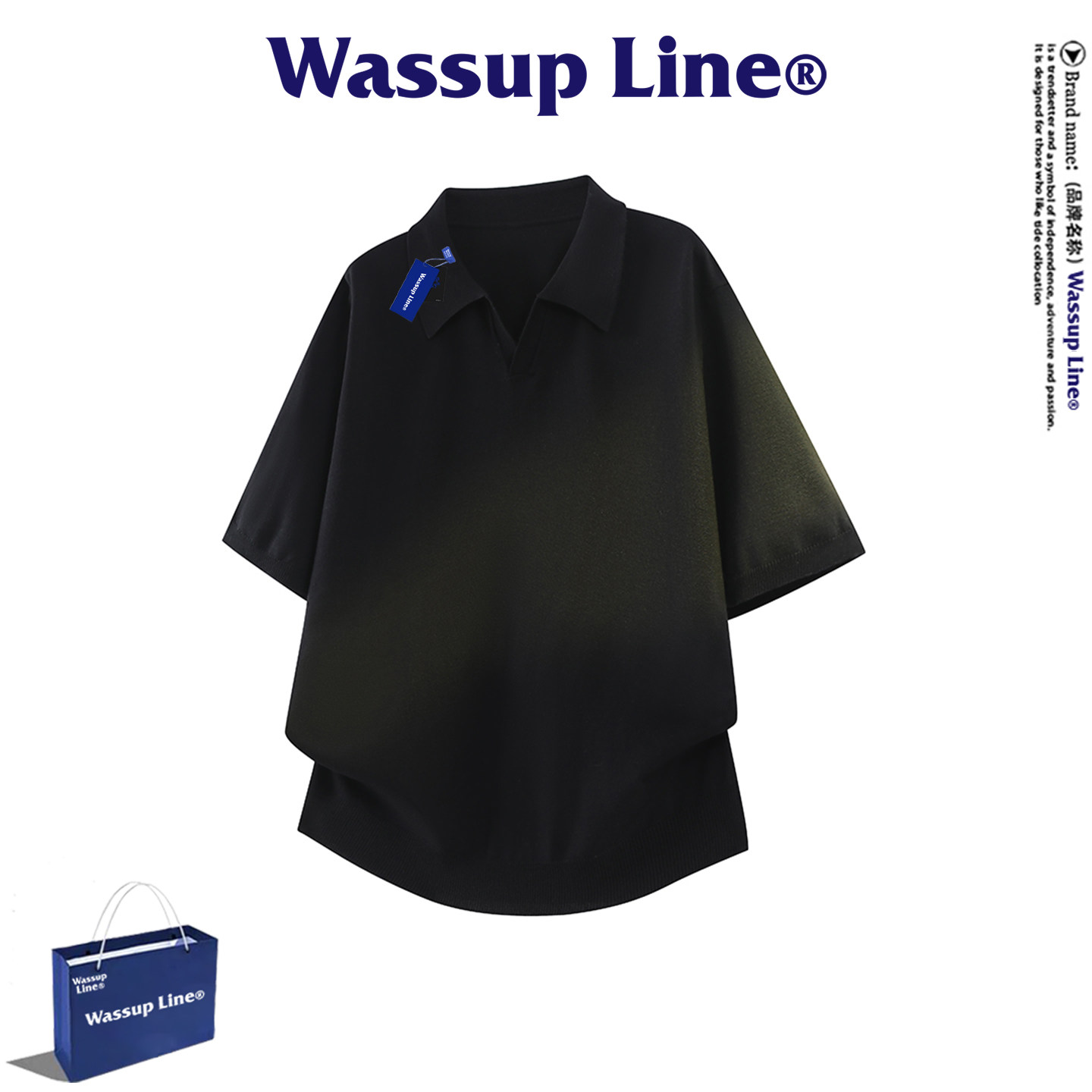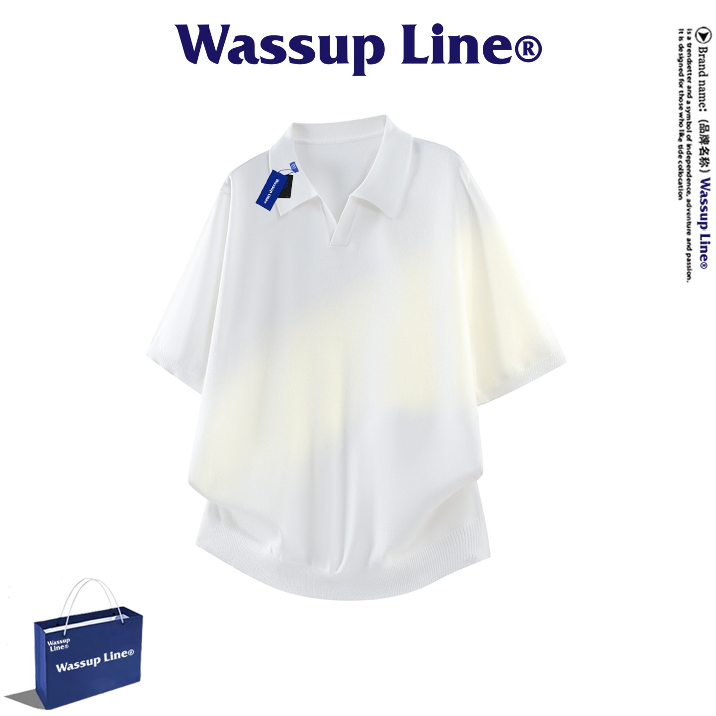 --------------------- WASSUP Line潮牌休闲短袖T恤男夏季潮流百搭宽松透气针织翻领上衣 【原售价】398元 【现售价】77.4元 【推荐理由】