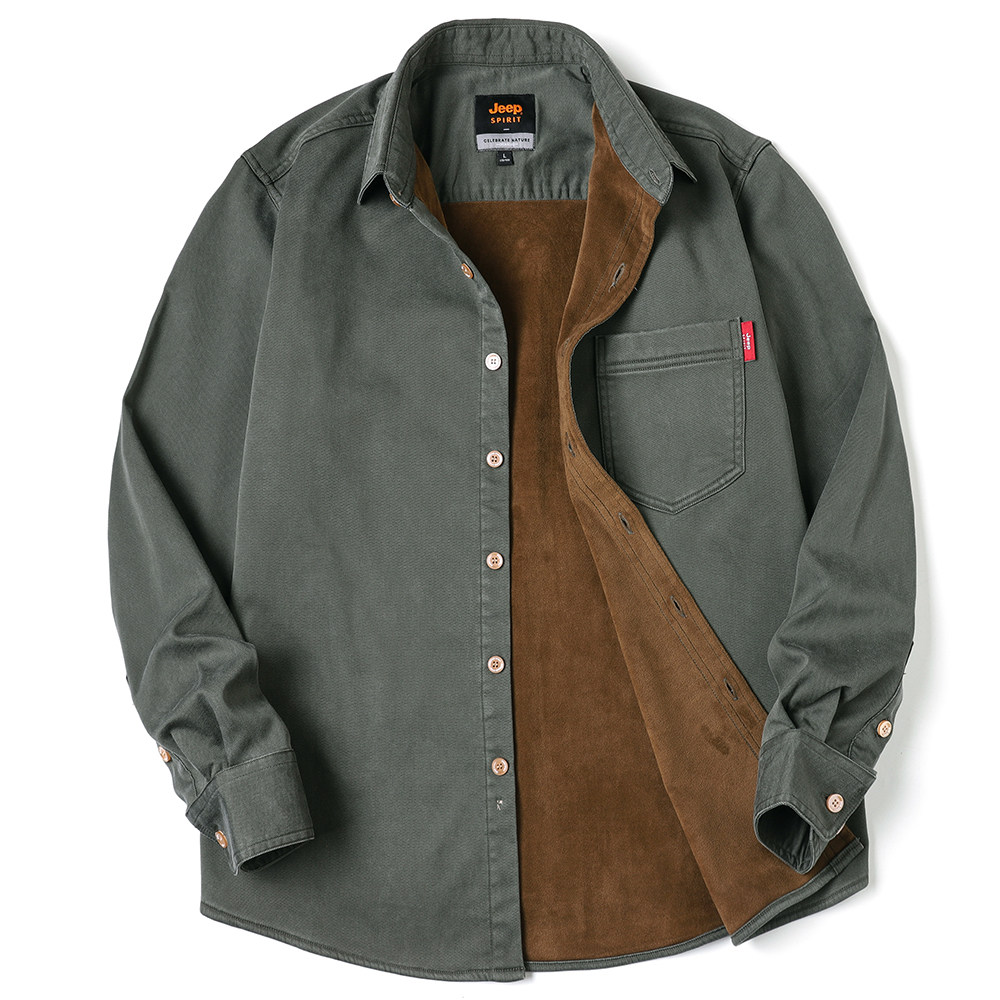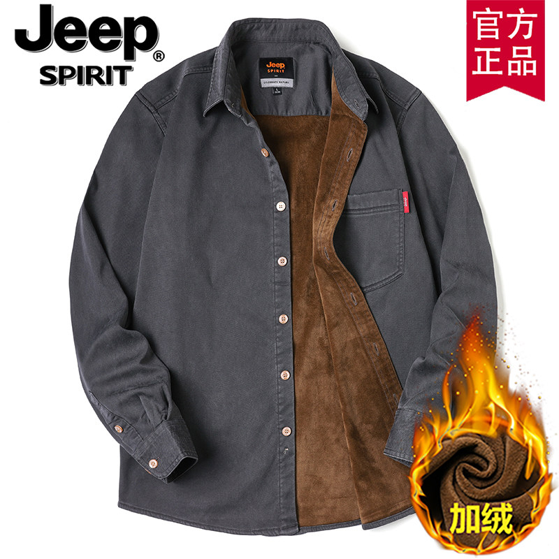 jeep官方正品秋冬新款加绒加厚长袖衬衫男士休闲宽松大码衬衣外套