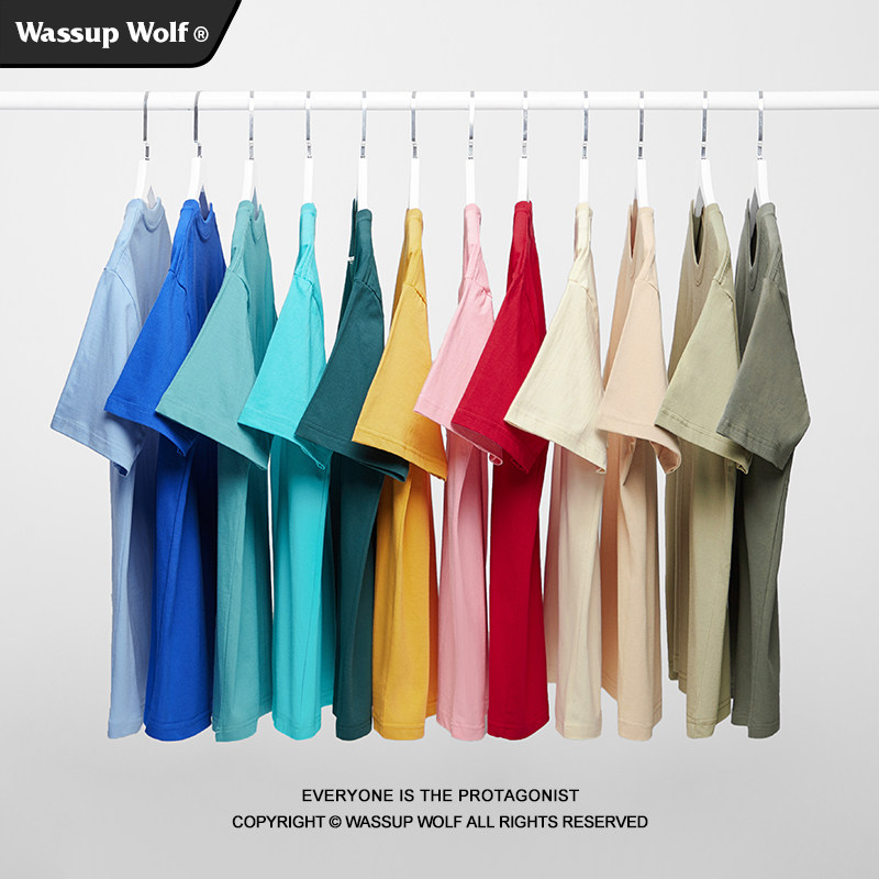 WASSUP美式250g重磅纯棉短袖t恤男女夏季圆领半袖情侣纯色打底衫