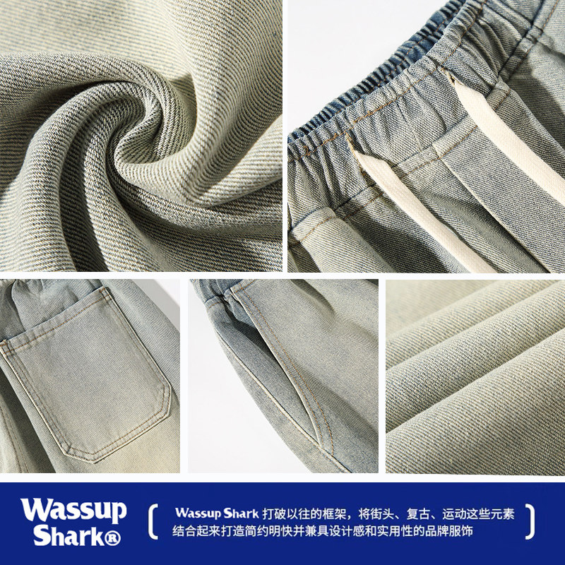 --------------------- Wassup Shark美式复古水洗做旧黄泥牛仔裤春秋季男士宽松阔腿长裤 【原售价】298元 【现售价】68.6元 【推荐理由】