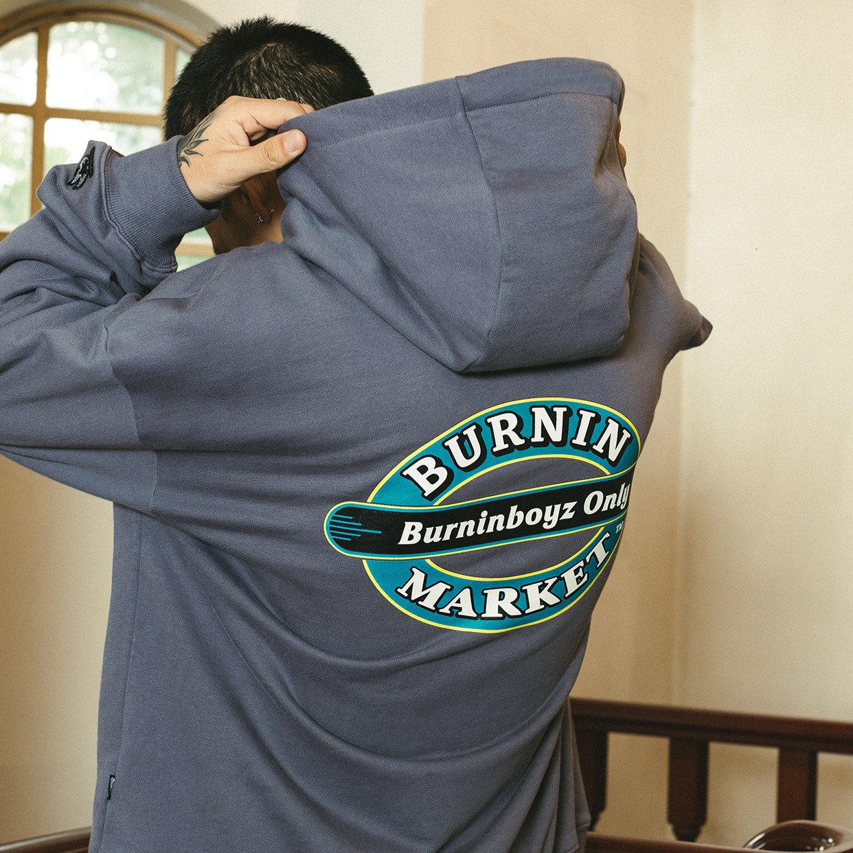 BURNIN* 博宁广告牌帽衫抽绳宽松连帽卫衣国潮百搭宽松休闲外套男
