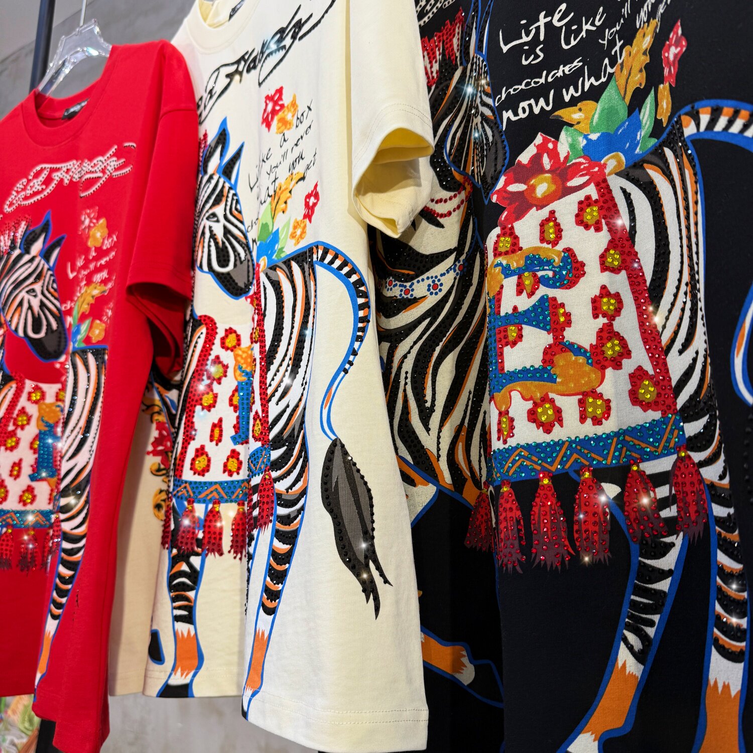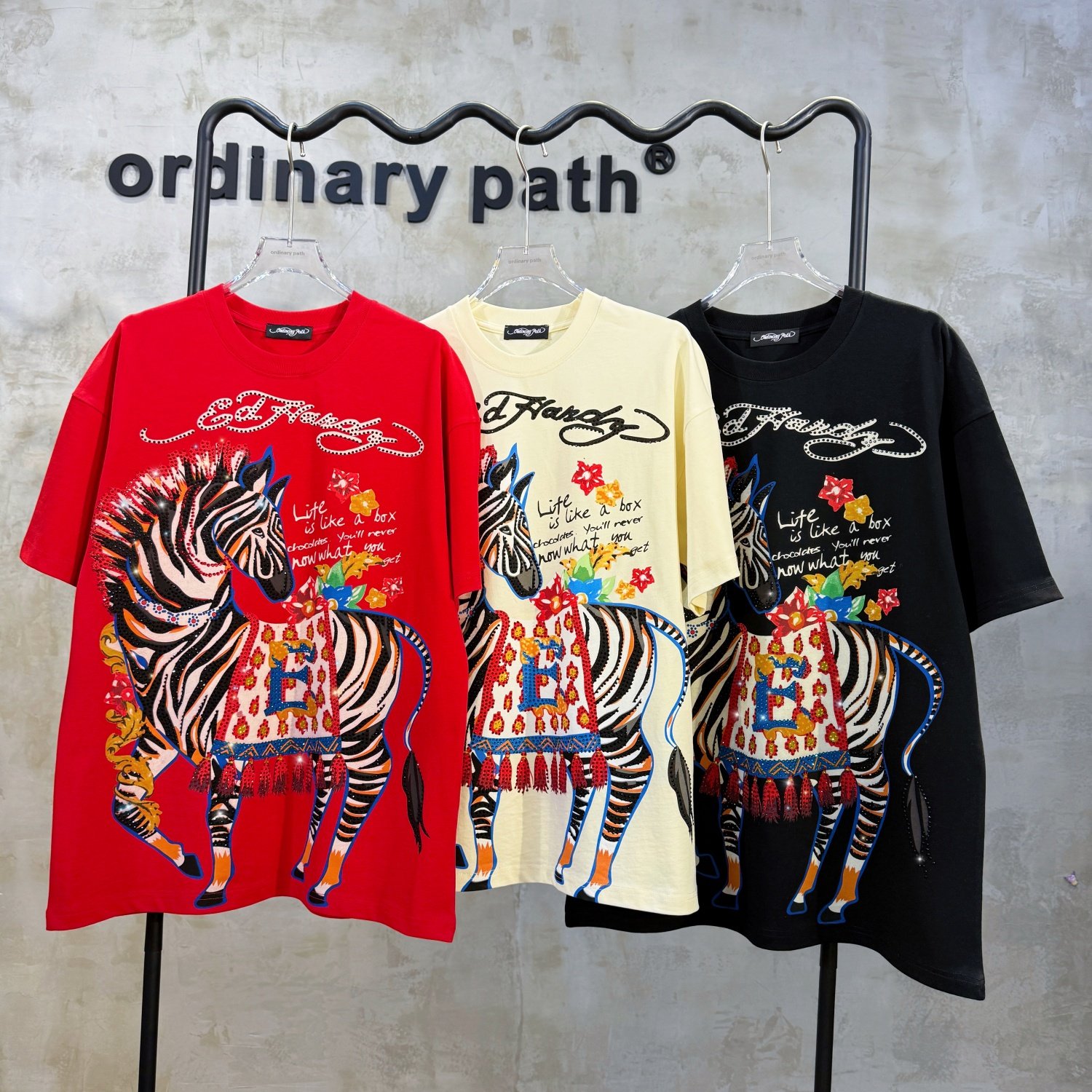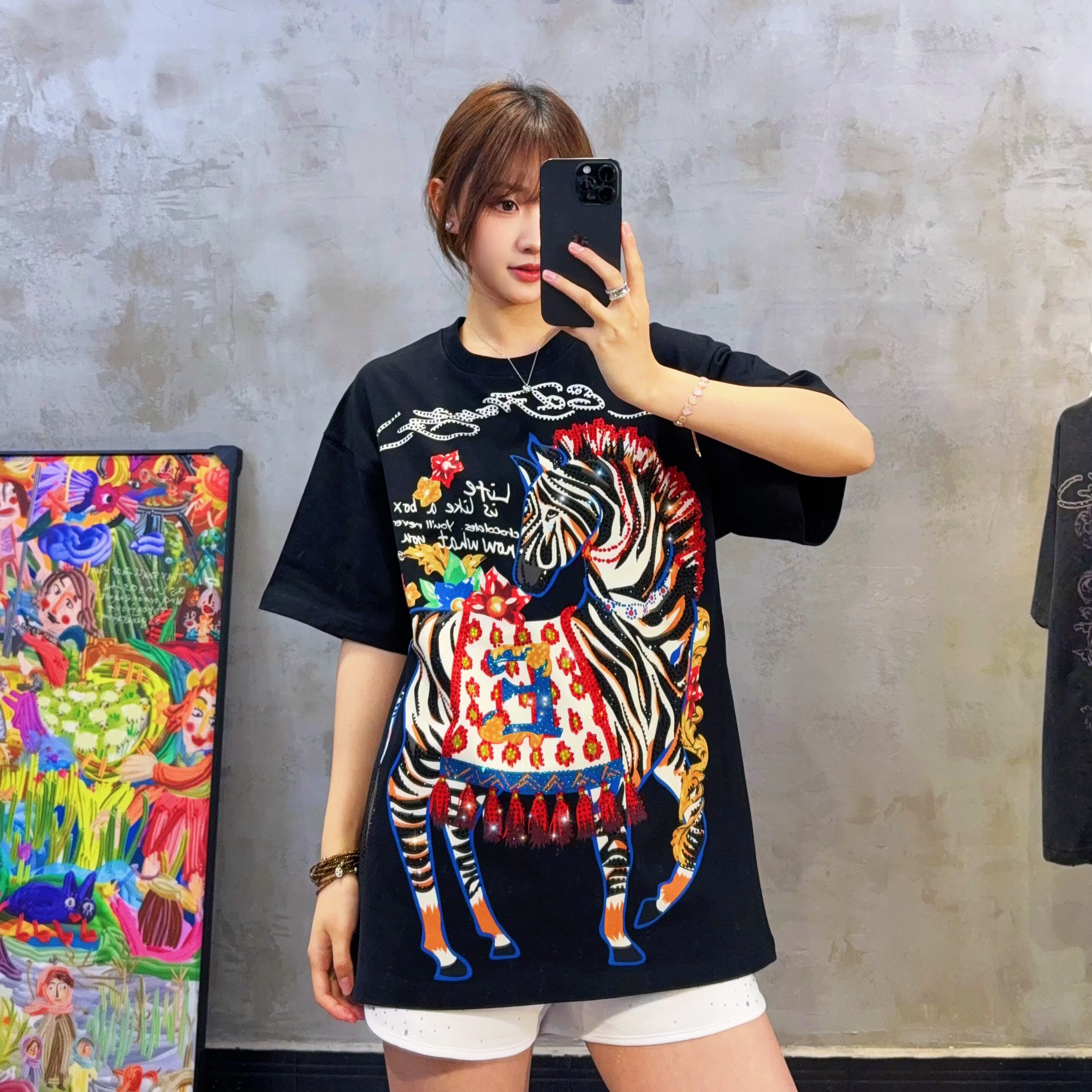 淘宝奢潮马年限定新年款烫钻小马红色短袖重工印花高货情侣款潮人T恤