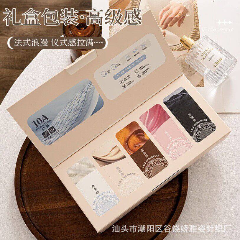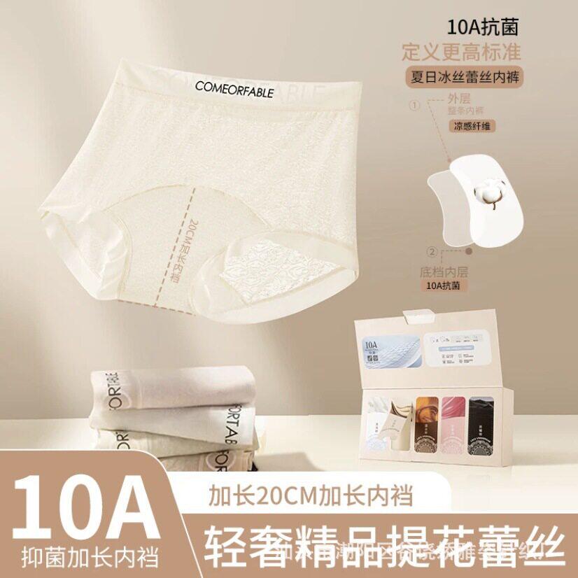 淘宝奢媄汇纯欲无痕蕾丝中腰内裤女字母内裤运动风盒装内裤加长底裆a8