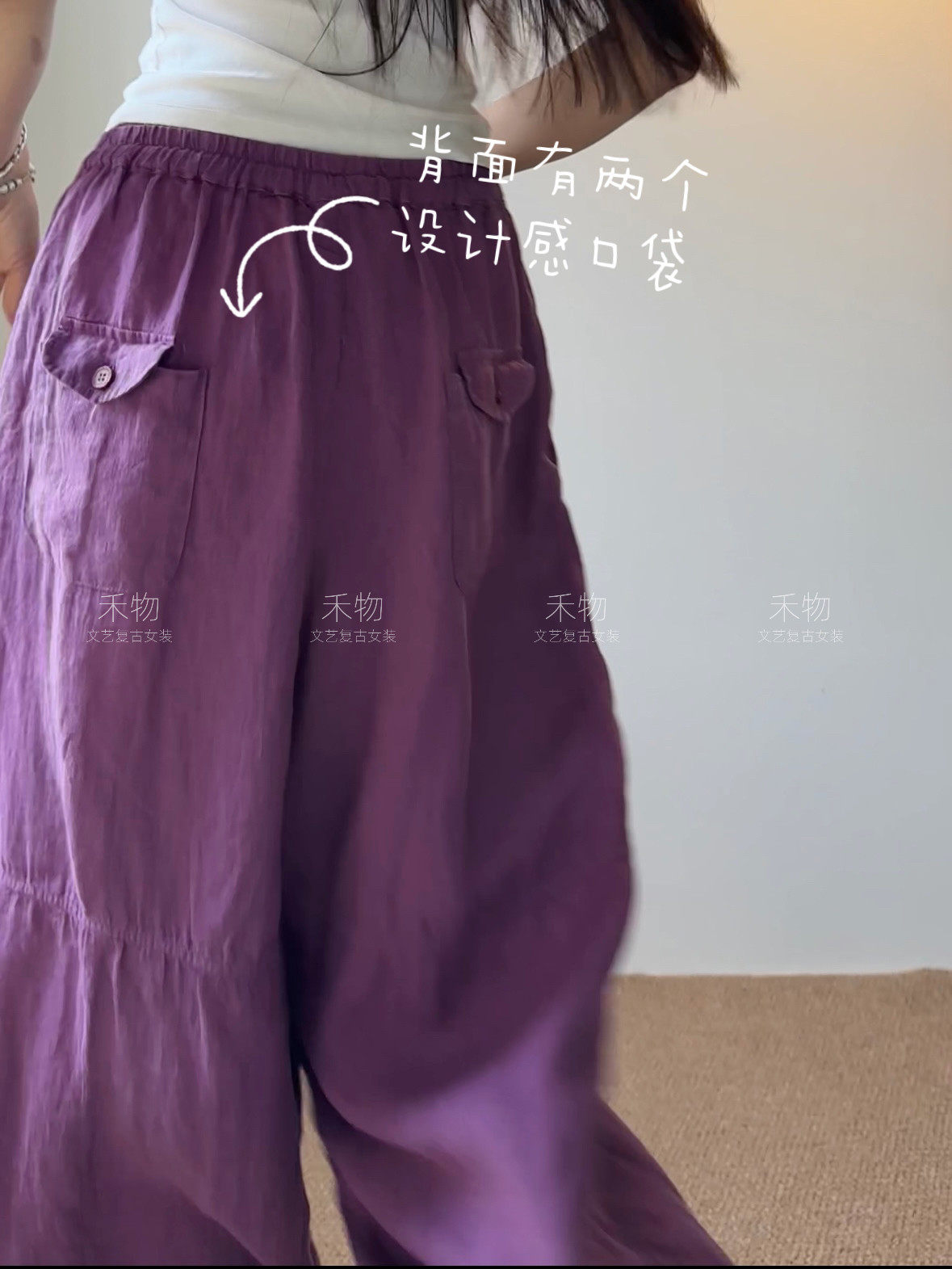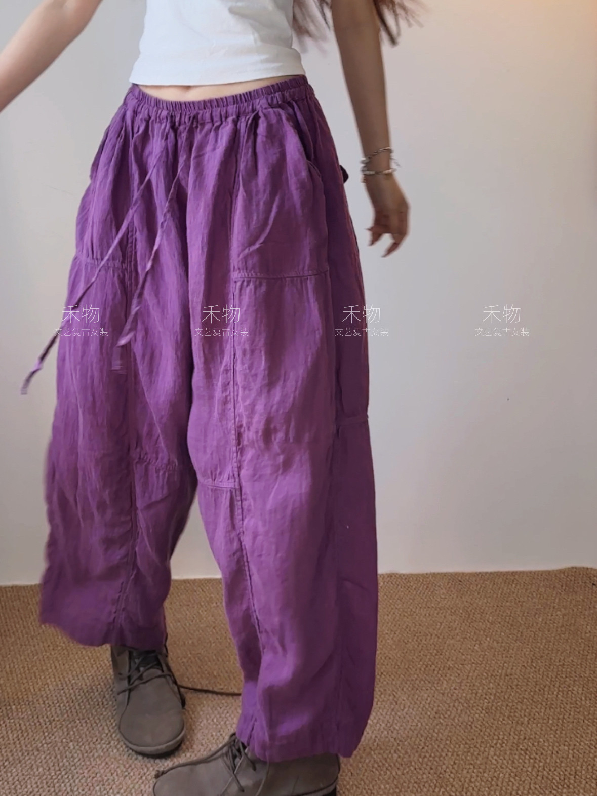 --------------------- 文艺亚麻拼接个性阔腿裤松紧腰宽松垂感休闲裤子透气凉感吸汗长裤 --------------------- --------------------- 【原价】209元 【券后价】204元