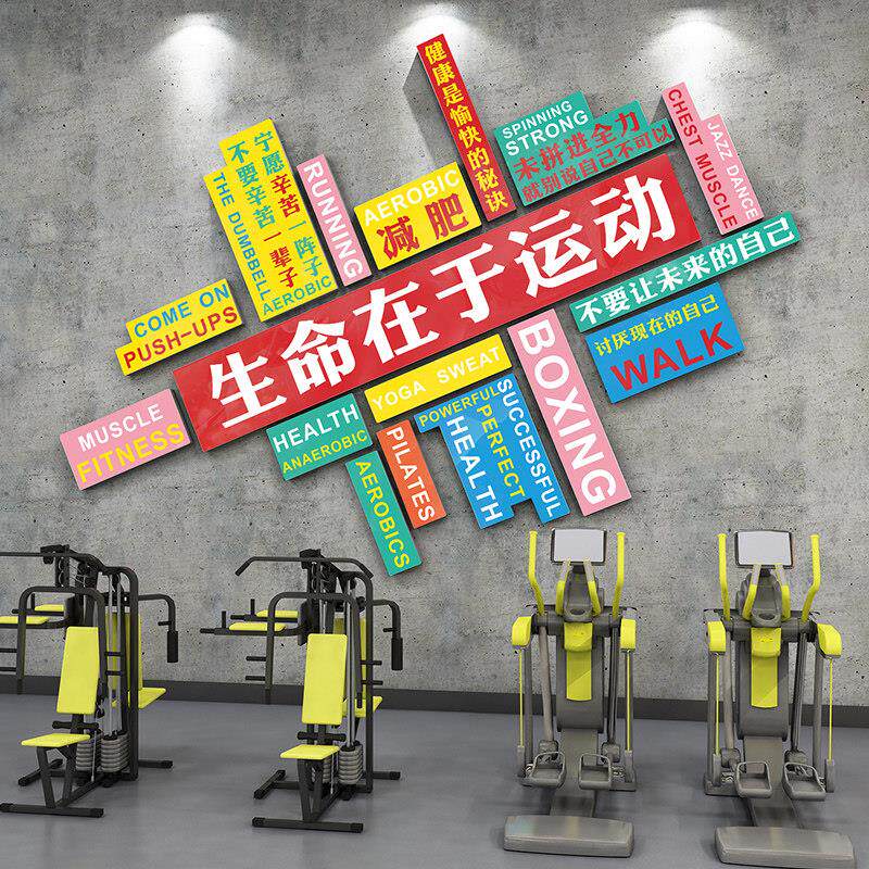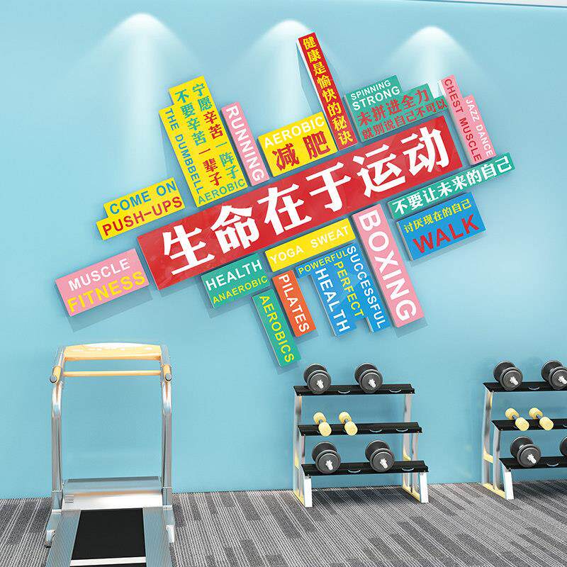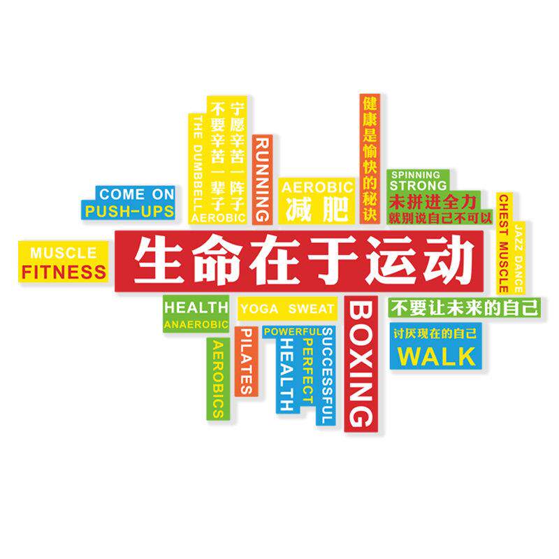 生命在于运动健身房墙面装饰励志墙贴挂画体育文化标语3d立体布置