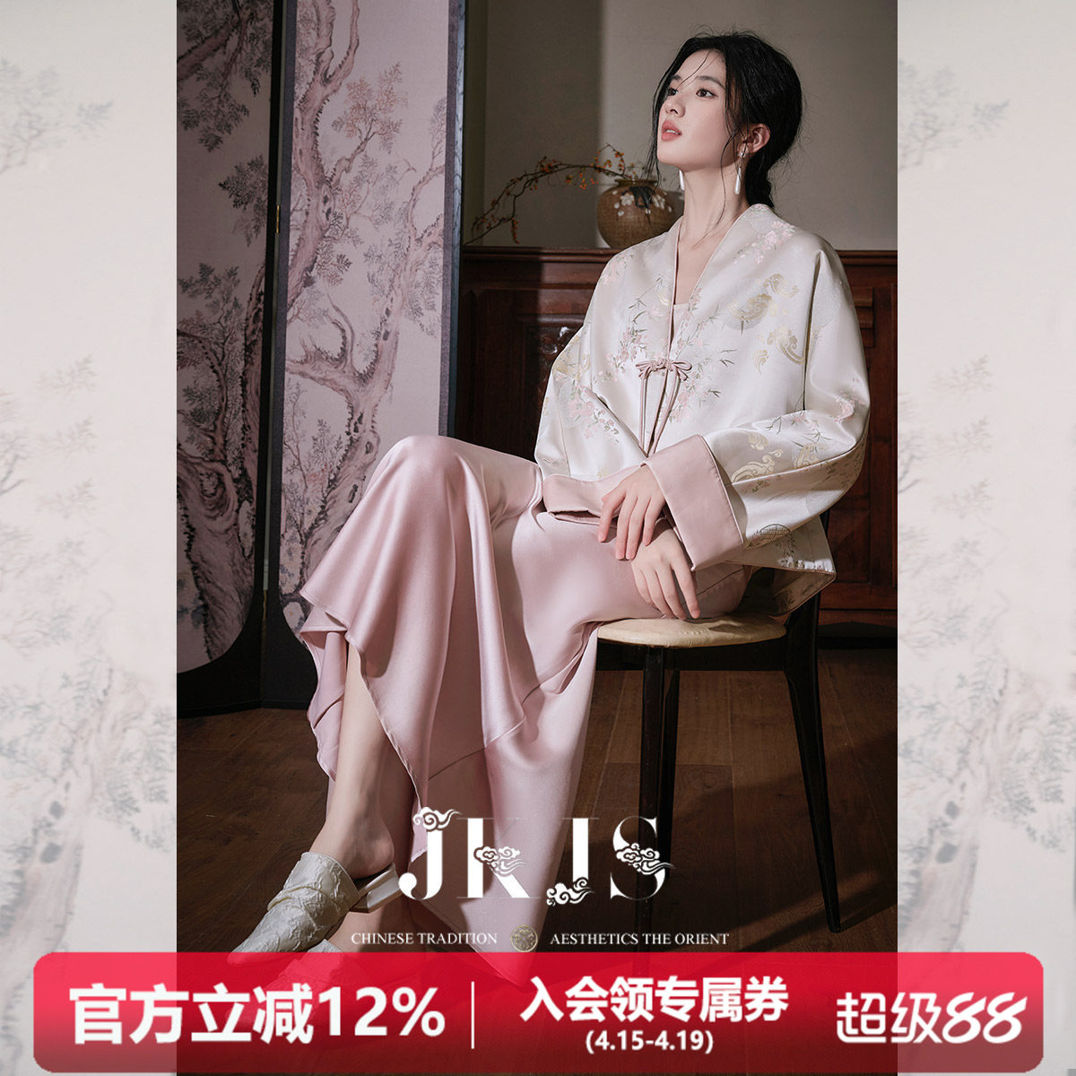 淘宝JKJS【青子衿】缎感提花国风外套春秋2026套装汉服上衣新中式女装