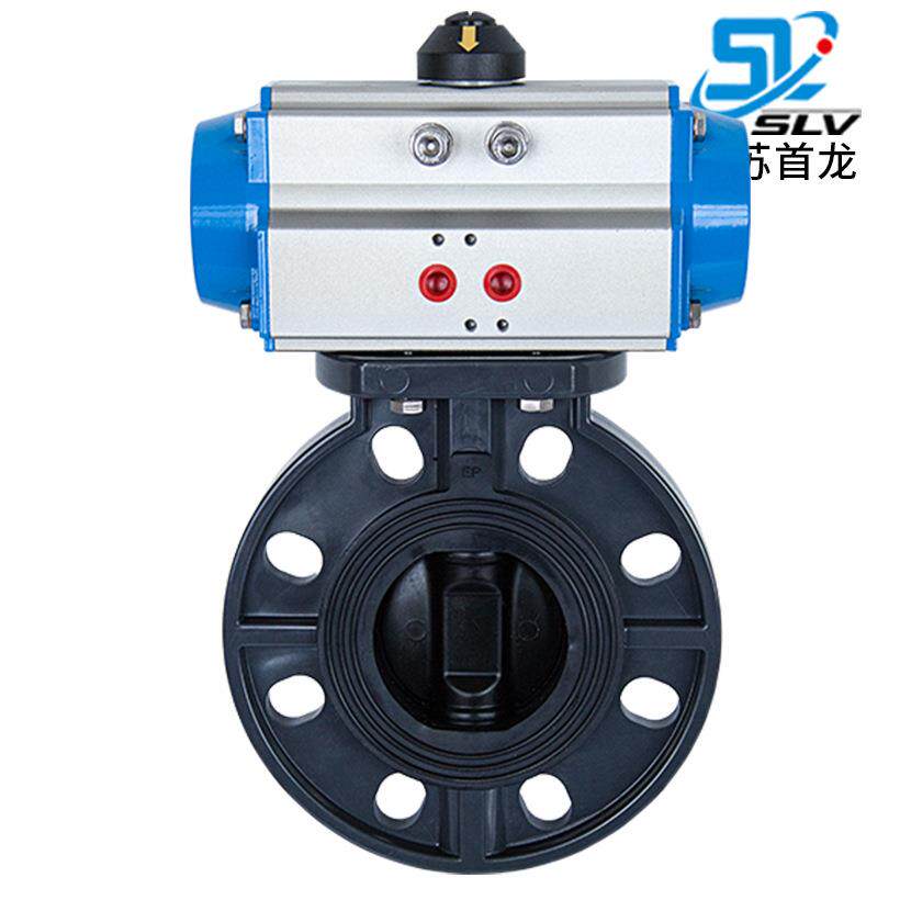 气动软密封对夹蝶阀 耐酸碱塑料对夹式蝶阀 气动塑料蝶阀