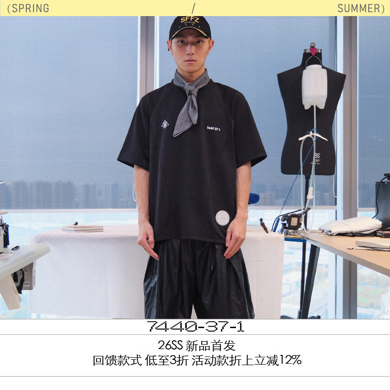 7440 37 1 网眼拼接V领训练服短袖T恤