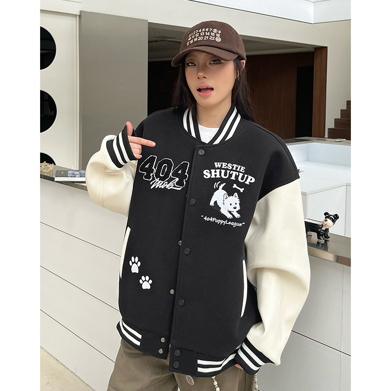 --------------------- 404MOB可爱毛绒小狗刺绣2025棒球服外套男女美式宽松学院设计夹克 --------------------- --------------------- 【原价】316元 【券后价】189元