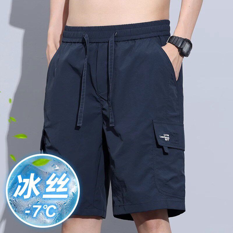 工装短裤男士2024夏季冰丝薄款宽松休闲中裤男生速干运动五分裤子