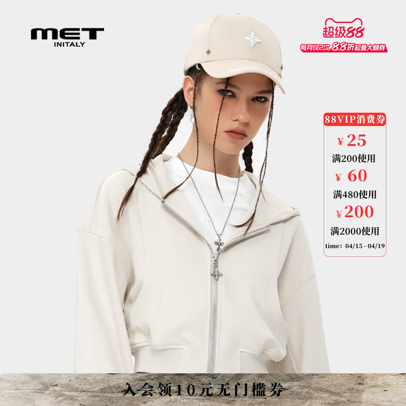 淘宝MET initaly夏季新款美式潮牌连帽卫衣女休闲街头风短外套