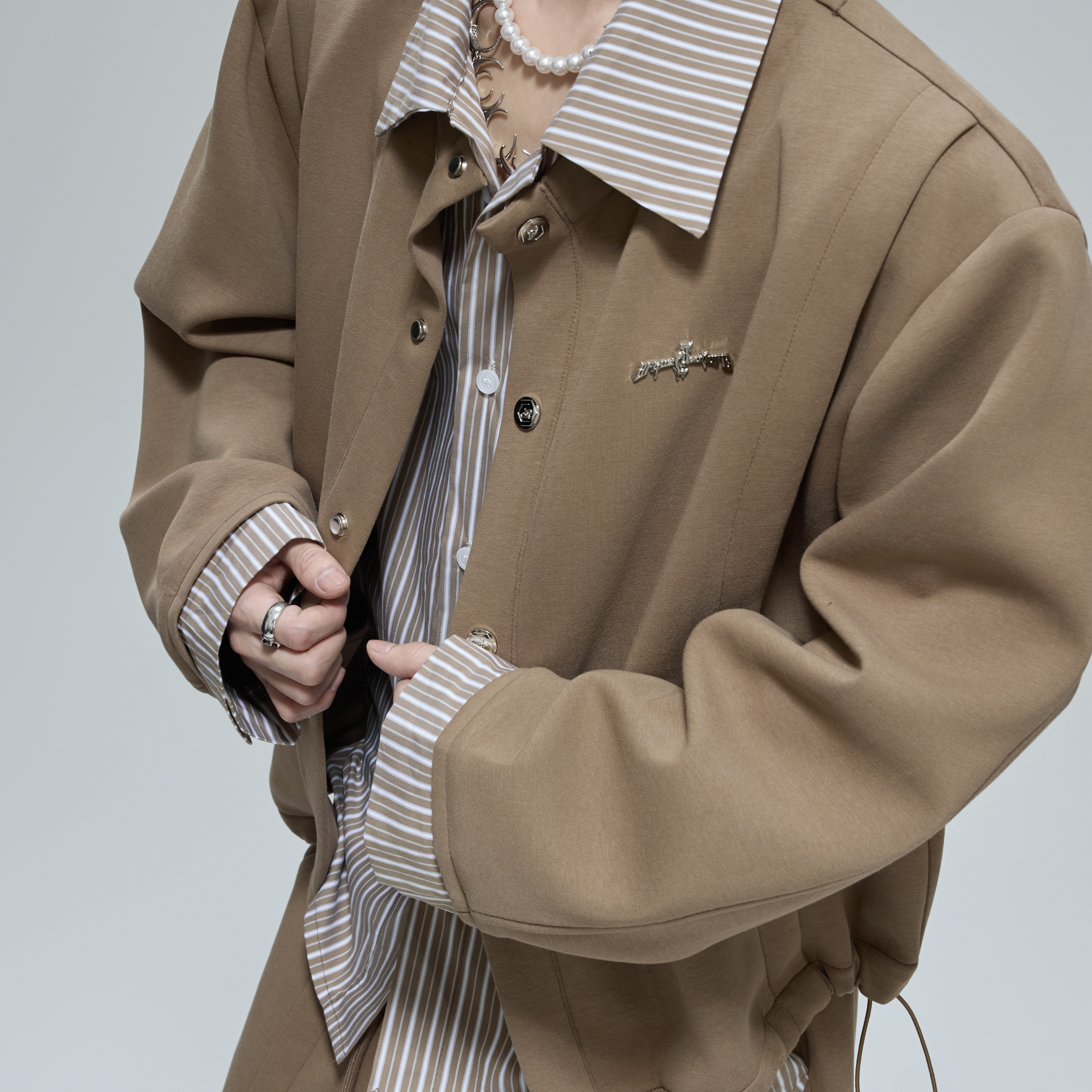 ArguE CulturE 秋冬小众条纹衬衫假两件拼接开衫卫衣套装薄款外套