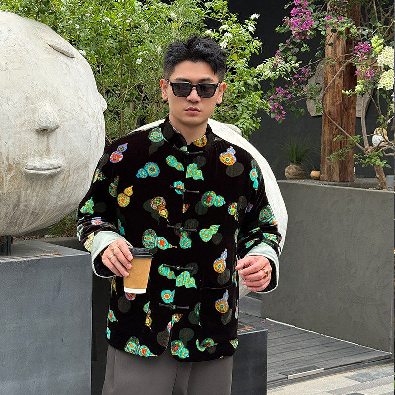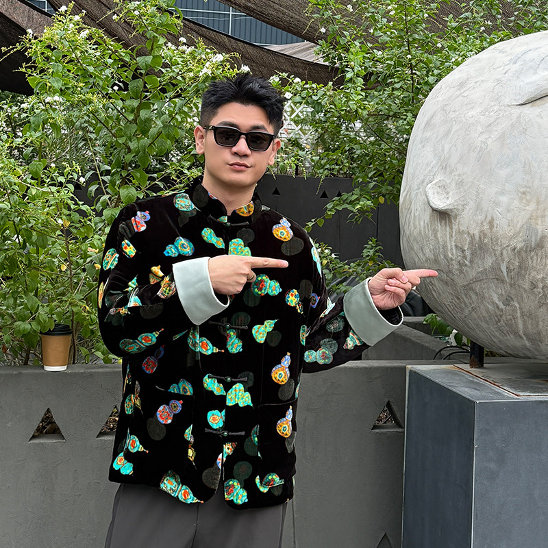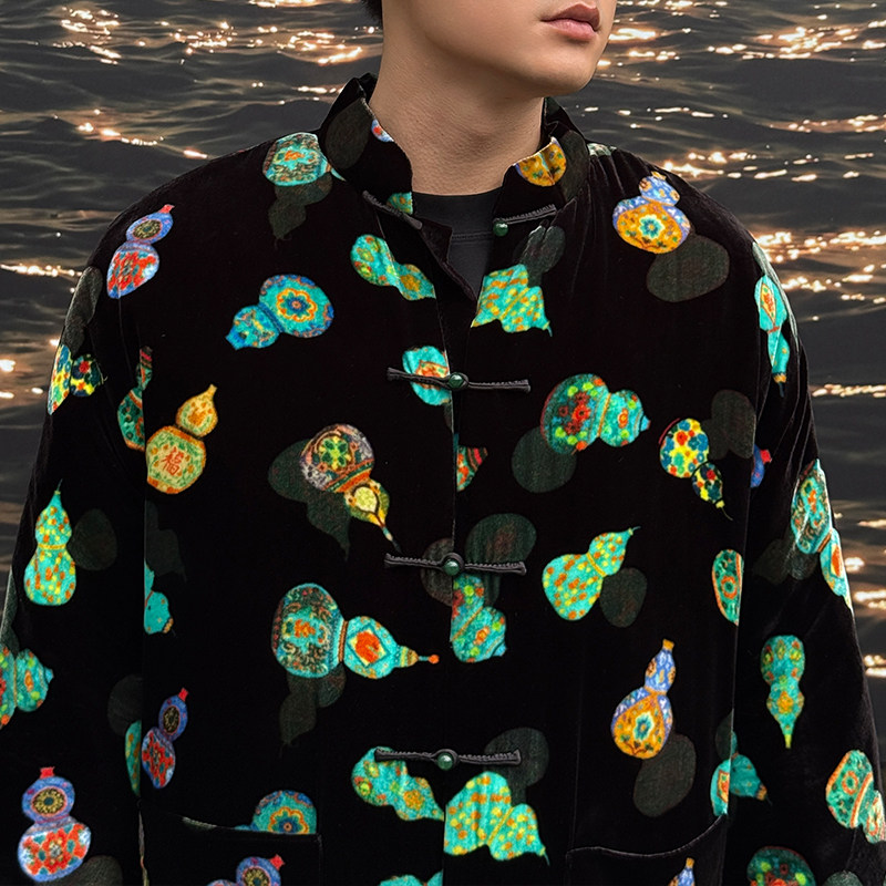葫芦曲三重门中国风真丝绒唐装外套中国风时尚桑蚕丝夹棉国潮保暖