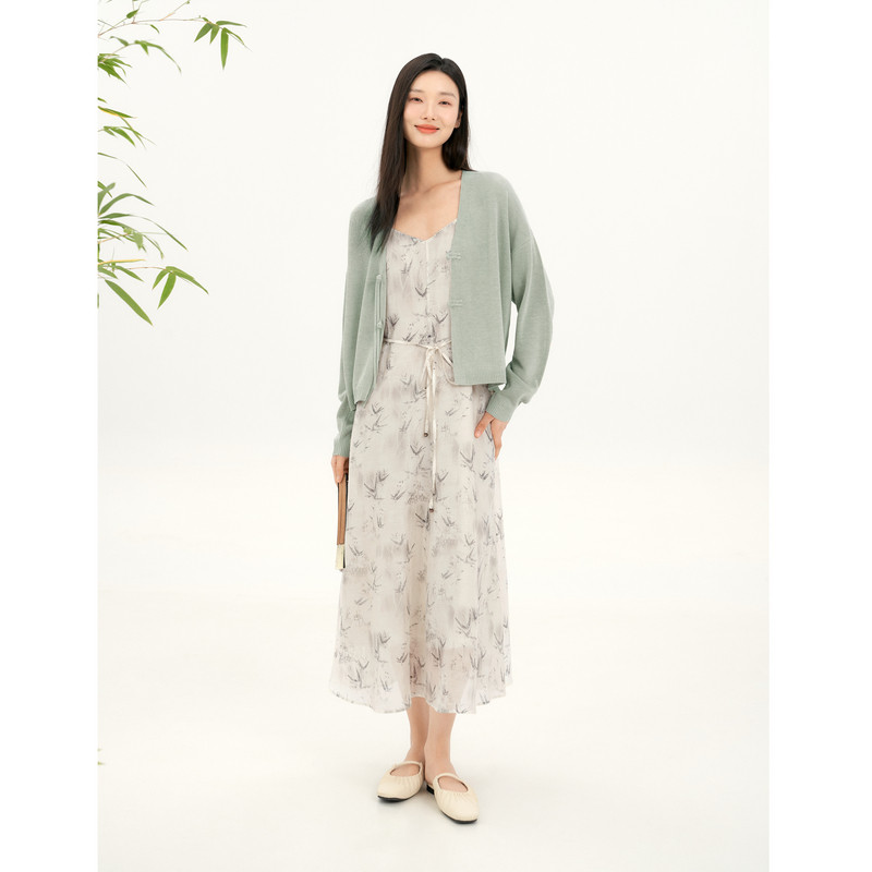 片断【竹影沐光】毛针织衫女春季新款新中式盘扣v领长袖上衣