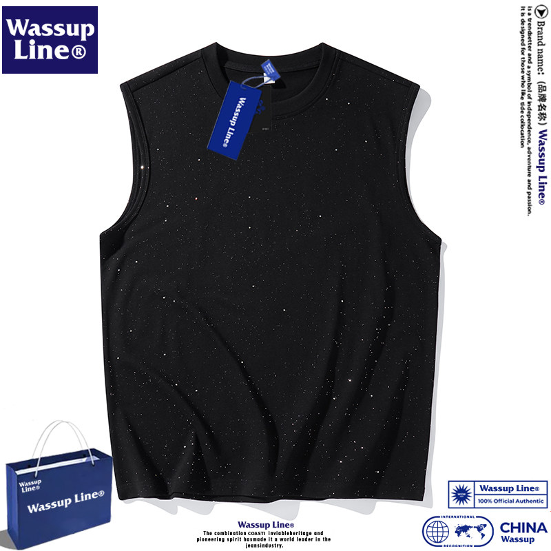WASSUP Line潮牌休闲夏季潮流纯色圆领百搭舒适宽松流行无袖T恤男