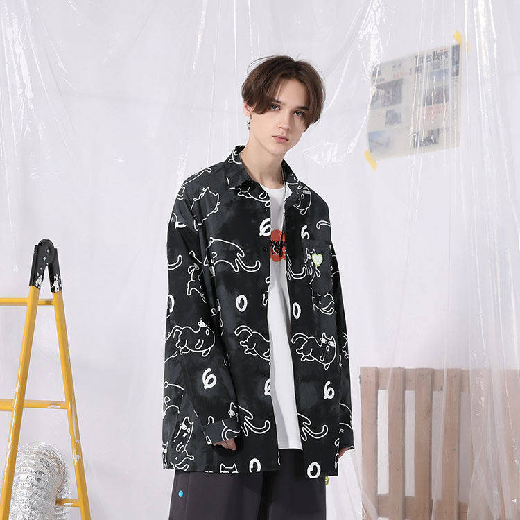 --------------------- XXGOGO春秋季卡通猫咪满印晕染长袖衬衫男女同款宽松衬衣情侣装 【原售价】99元 【现售价】99元 【推荐理由】