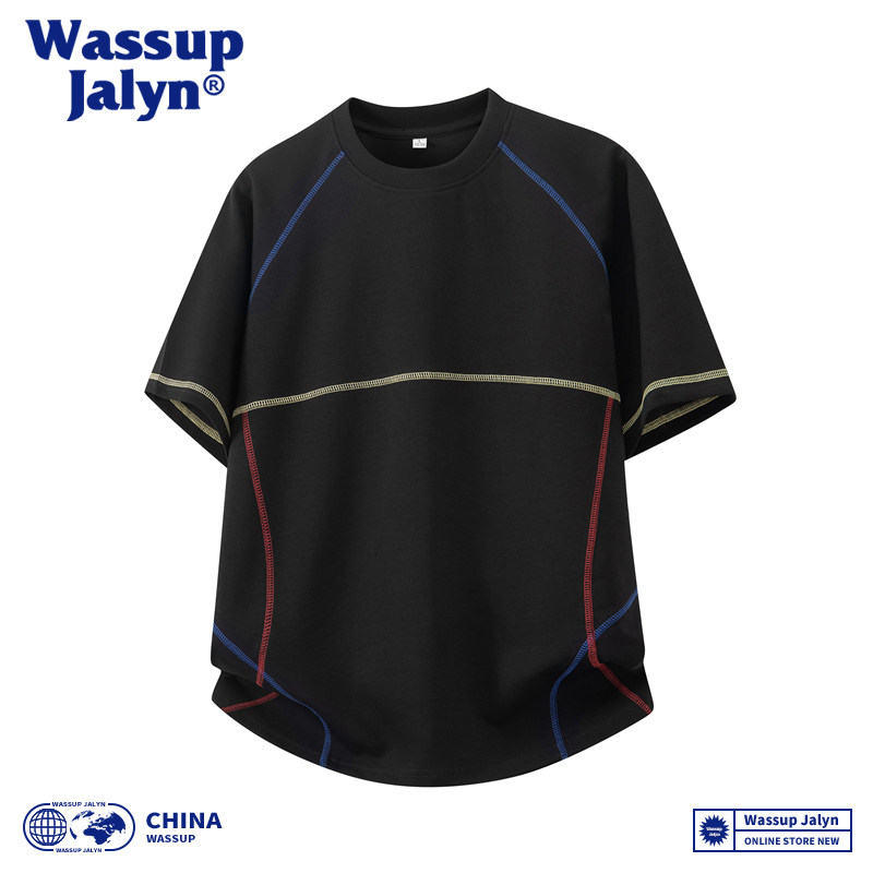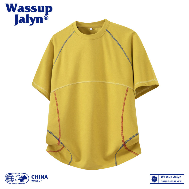 WASSUP JALYN夏季潮牌撞色辑明线短袖T恤男美式宽松情侣百搭半袖