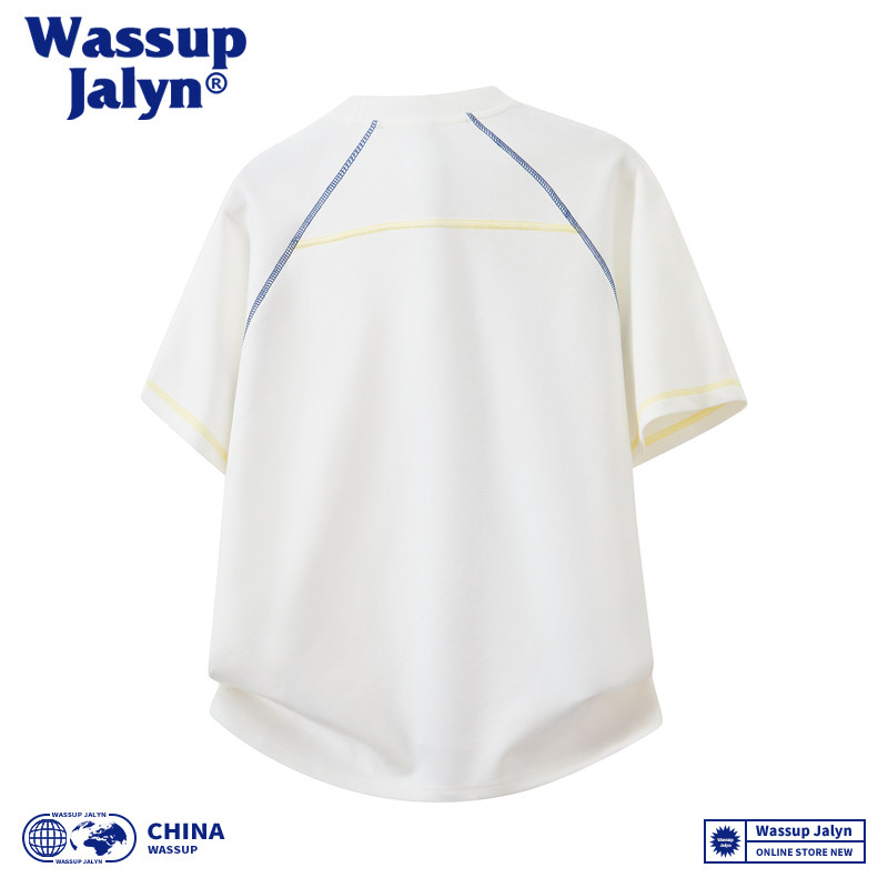 --------------------- WASSUP JALYN夏季潮牌撞色辑明线短袖T恤男美式宽松情侣百搭半袖 【原售价】58.7元 【现售价】49.9元 【推荐理由】