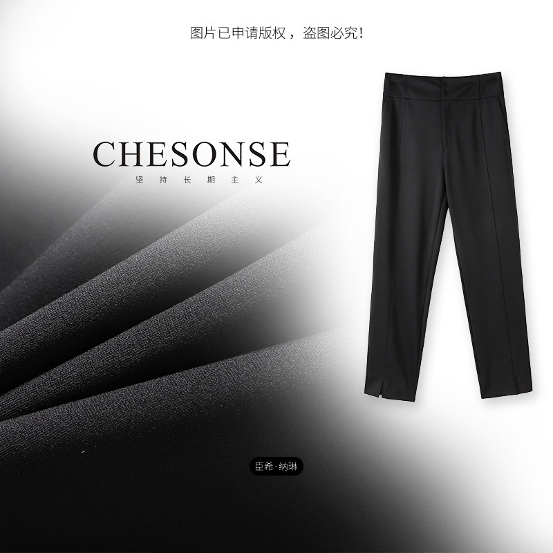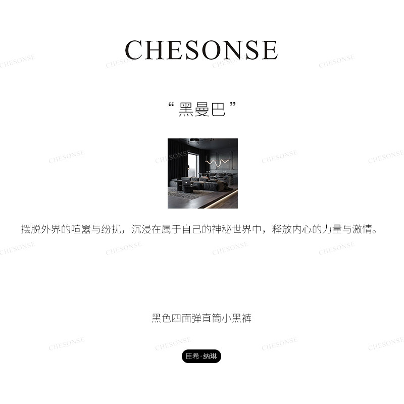 --------------------- 芝禾/CHESONSE【黑曼巴】黑色弹力直筒小黑裤宽松显瘦直筒裤24816 【原售价】205元 【现售价】180元 【推荐理由】