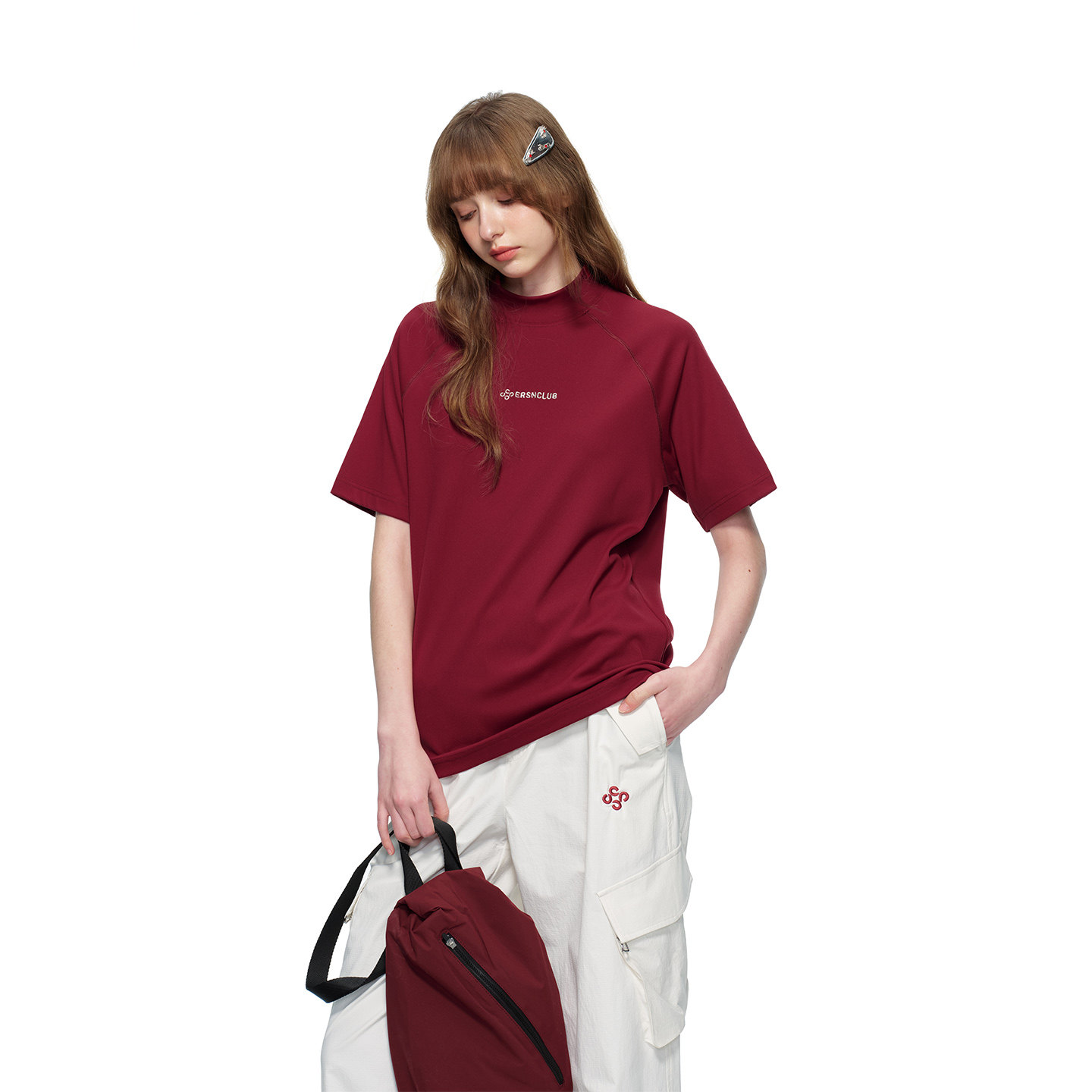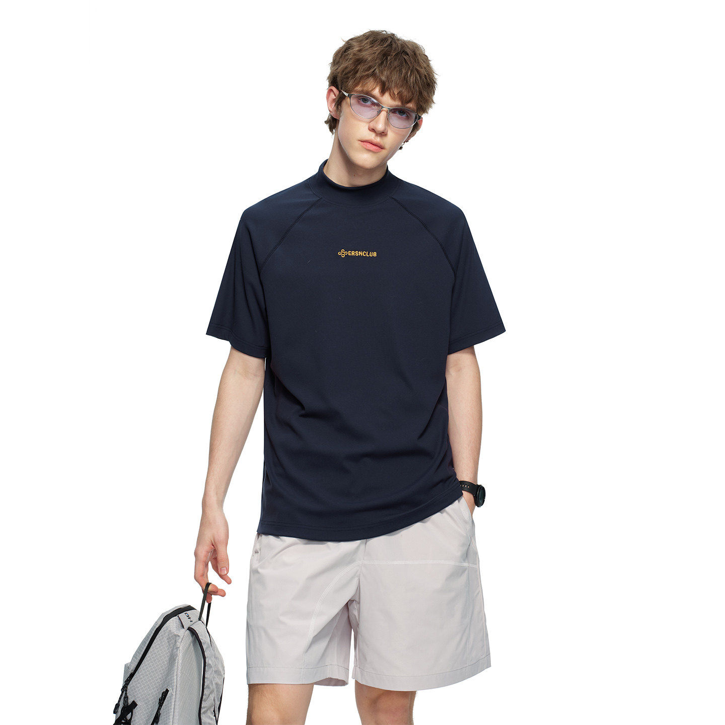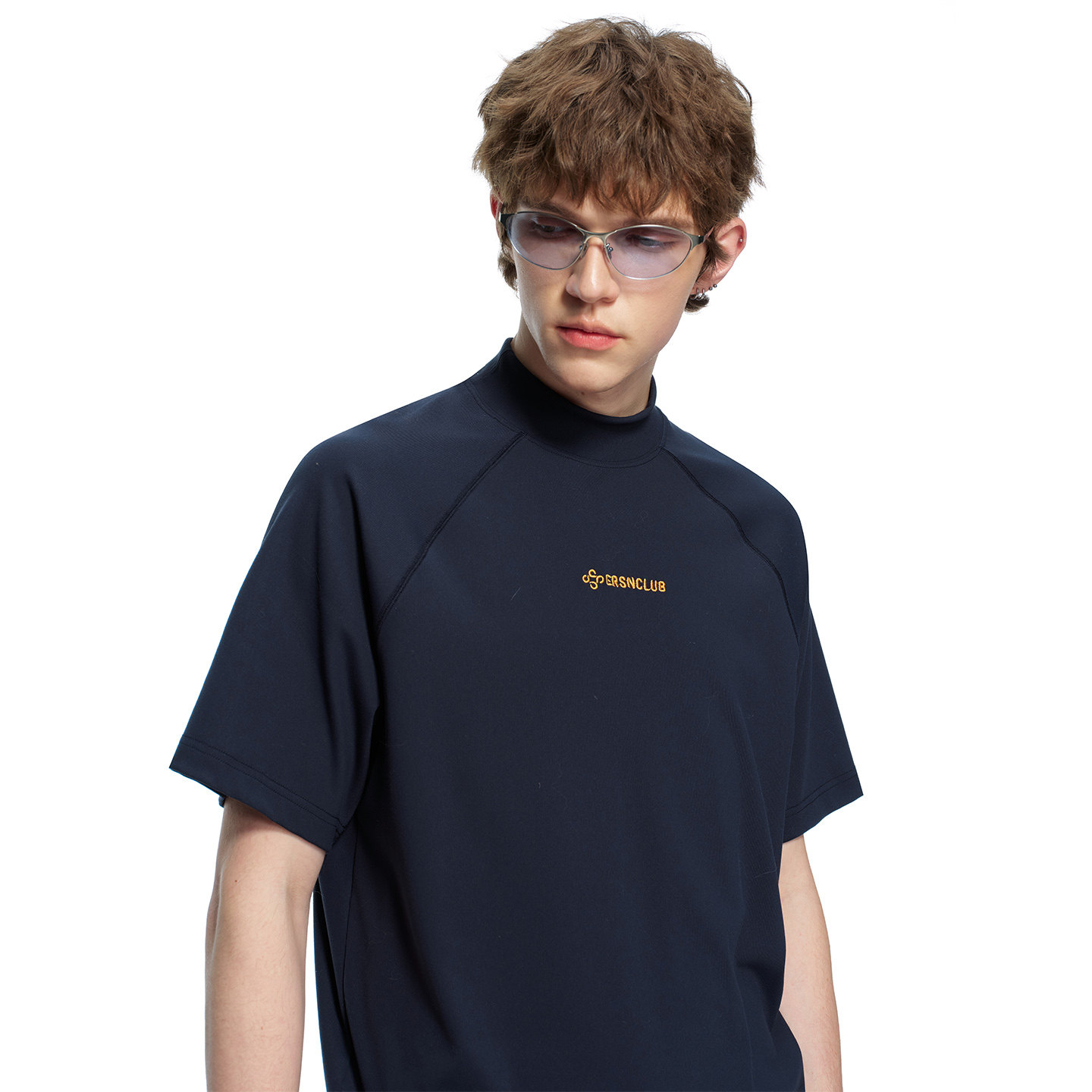 淘宝ERSN 半高领宽松字母印花短袖T恤男国潮城市通勤休闲运动男女上衣