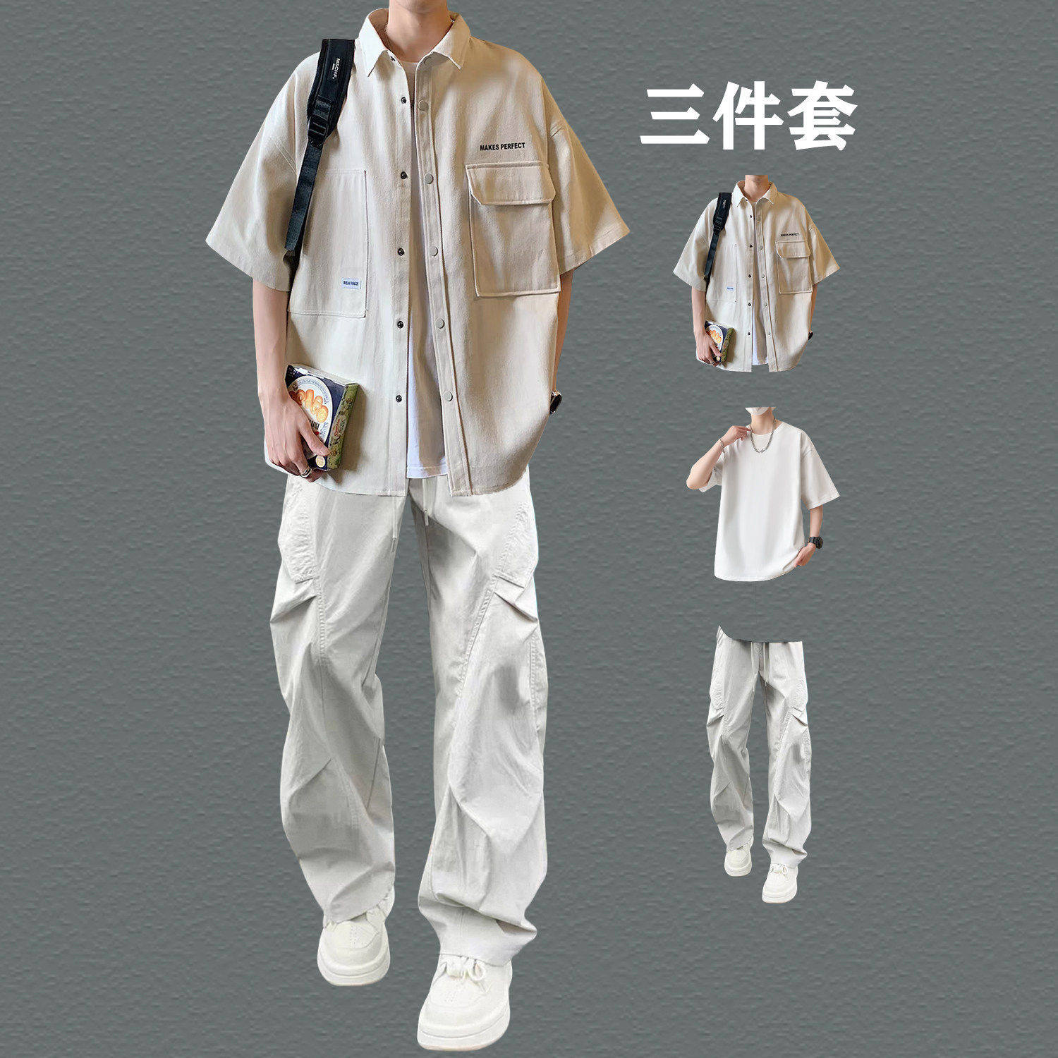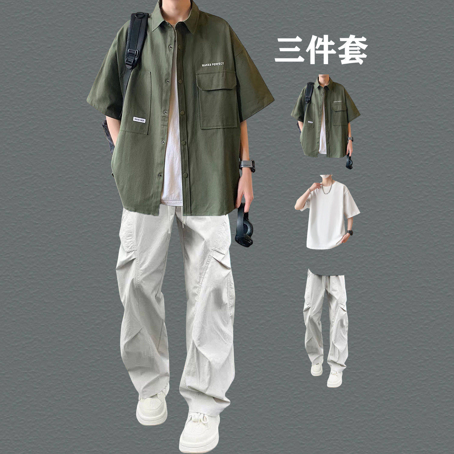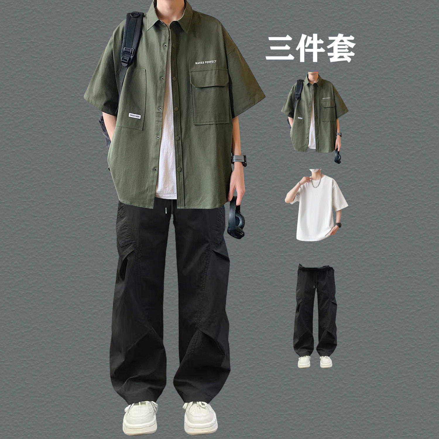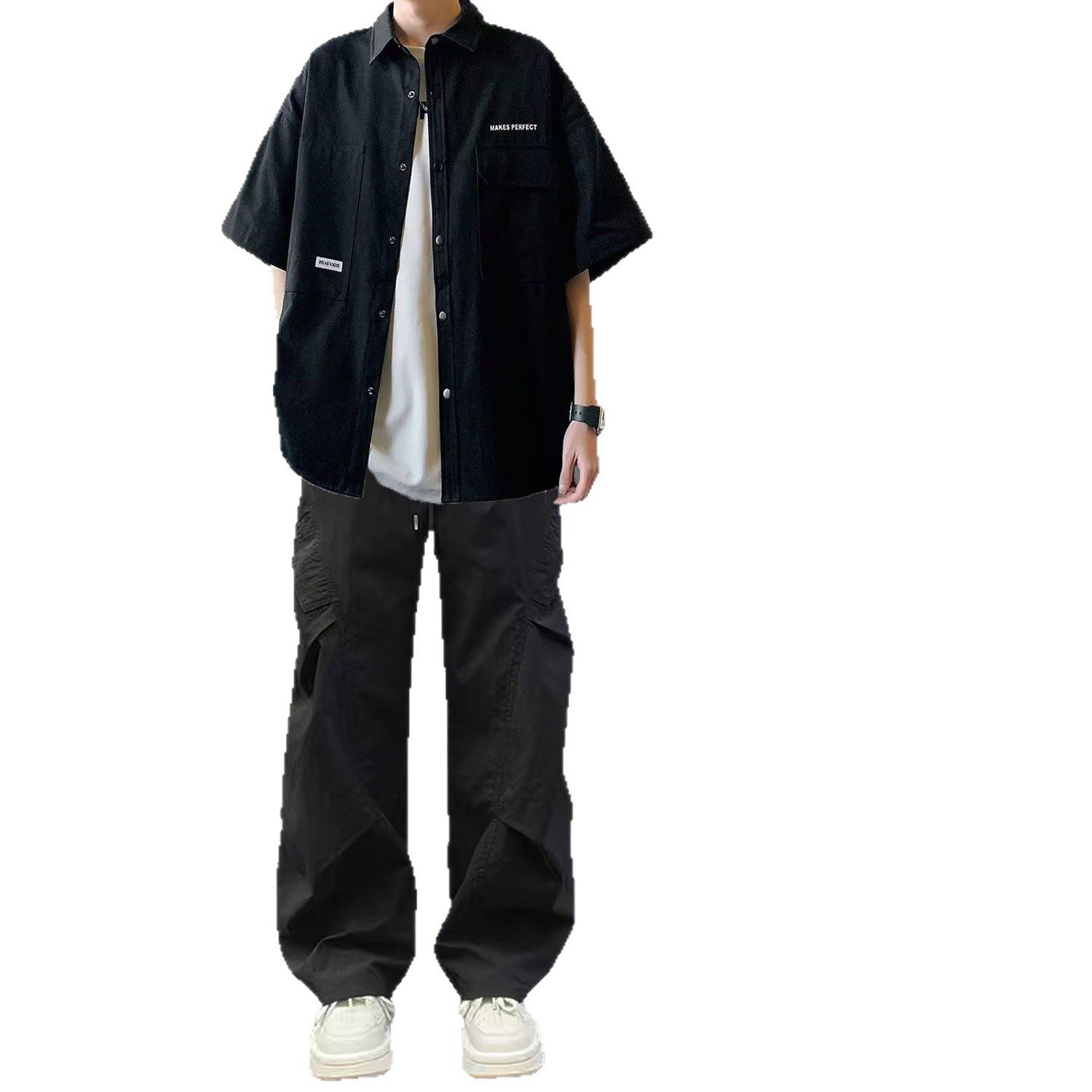 BENTIDEA 夏季薄款日系短袖衬衫男青少年潮流学生美式休闲穿搭