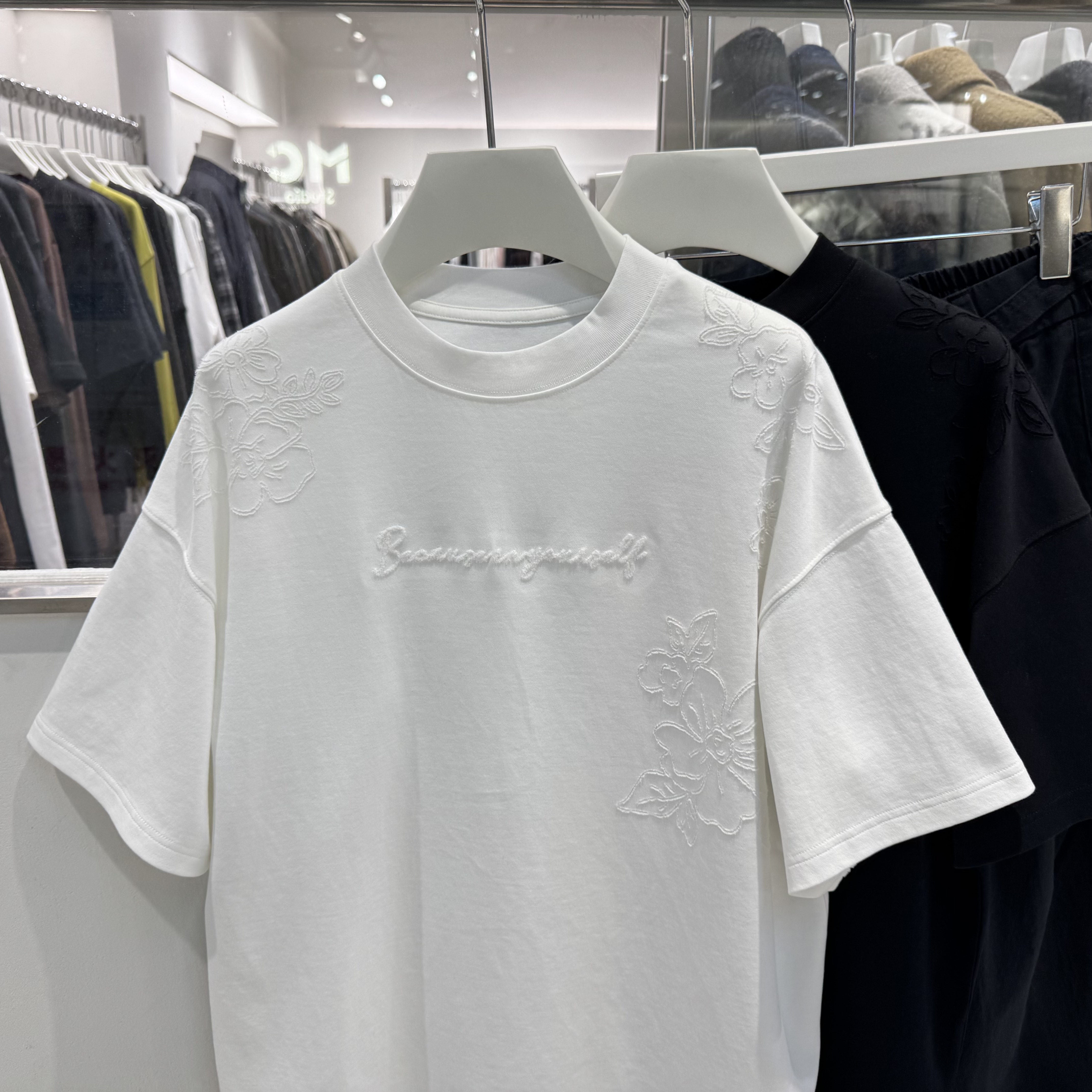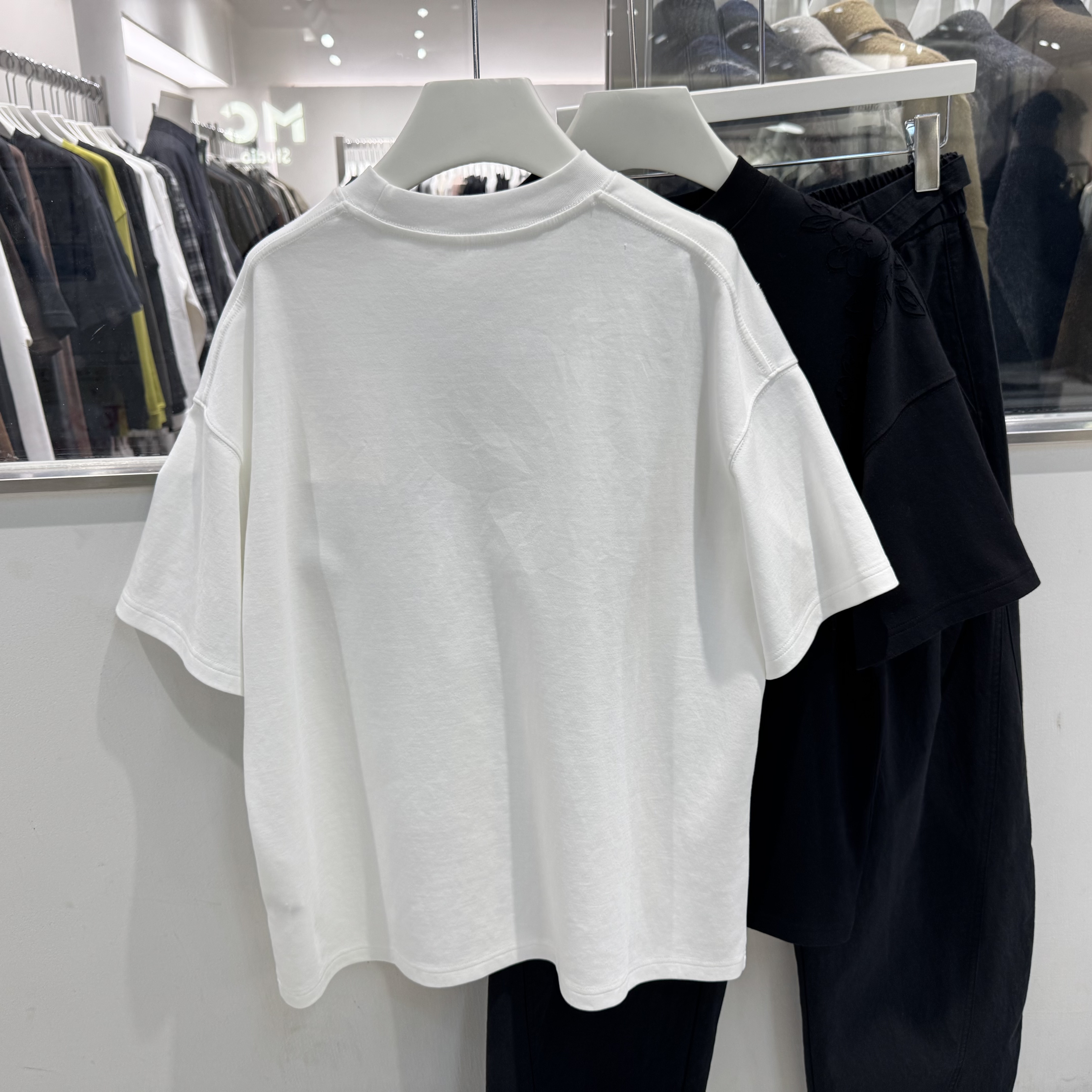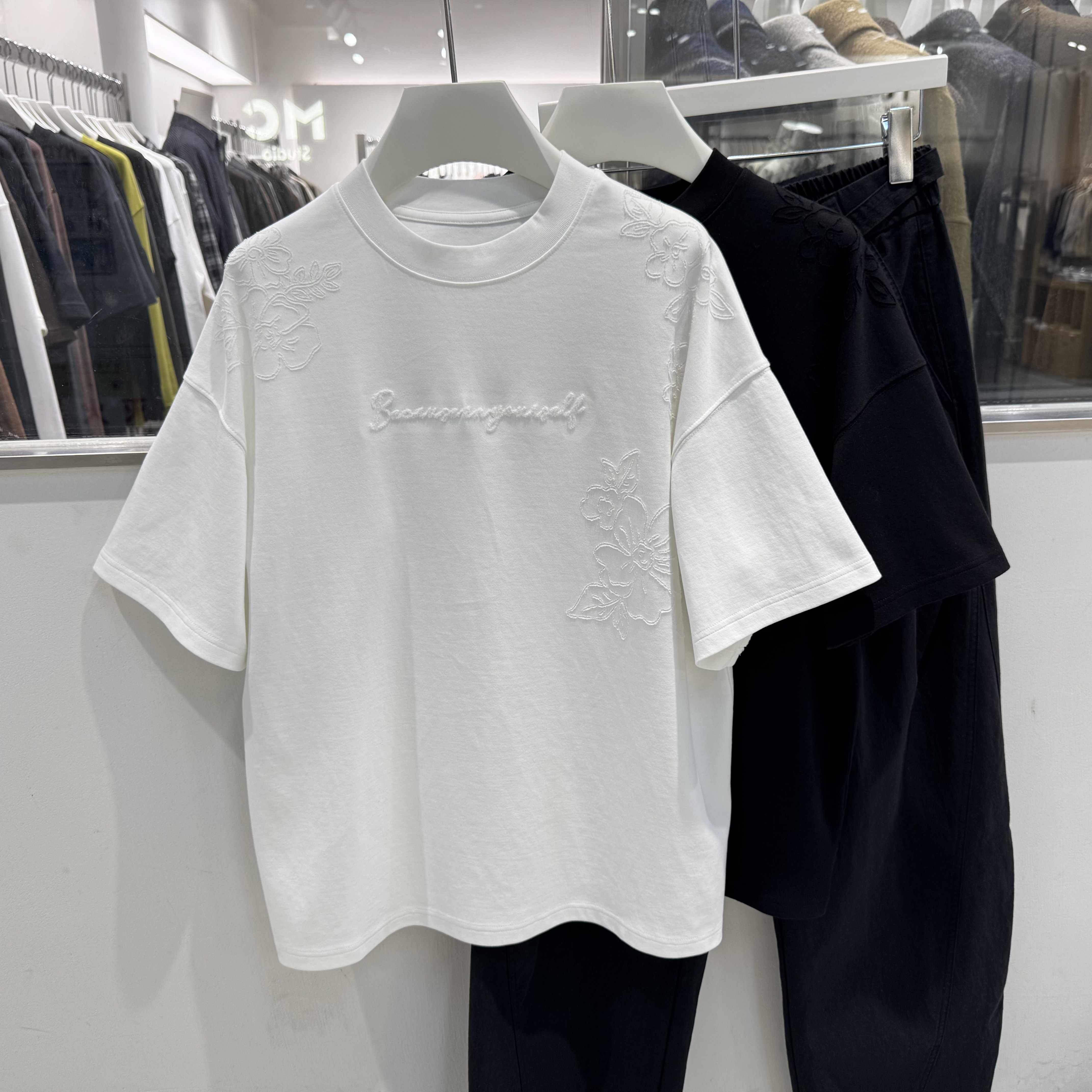 2026春夏美式复古重磅植绒印花短袖T恤男宽松休闲百搭圆领半袖t潮