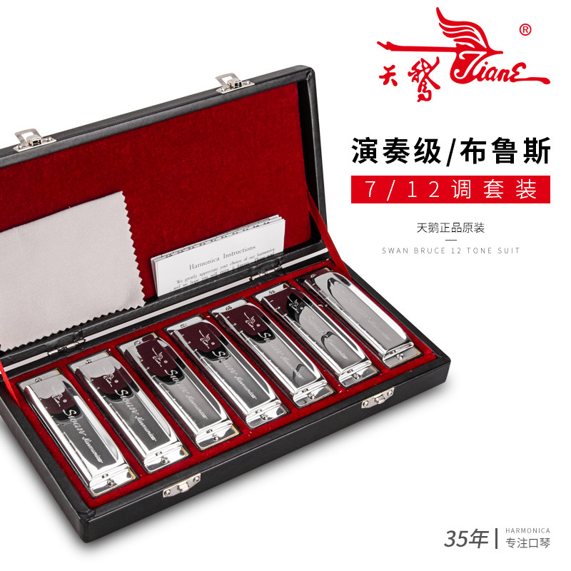 天鹅10孔布鲁斯口琴 全音阶蓝调十孔 7调/12调套装ABCDEFG调口琴